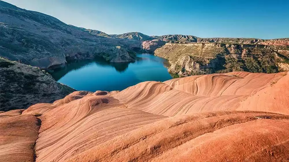 You can also jump and pose as you like on the water Danxia. The heart-shaped lake is too romantic. Remember to wear brightly colored clothes, because you have to "wave" in the Wave Valley!