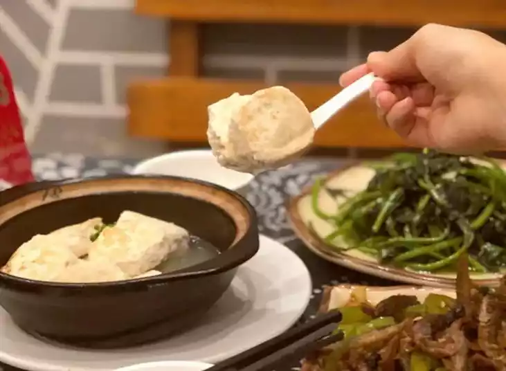 Huangyao stuffed tofu is different from other places in that it is pinched into small buns with the filling not showing, and they are of similar size and shape.