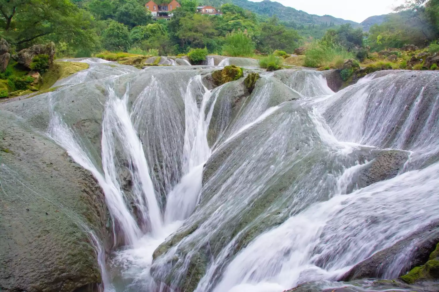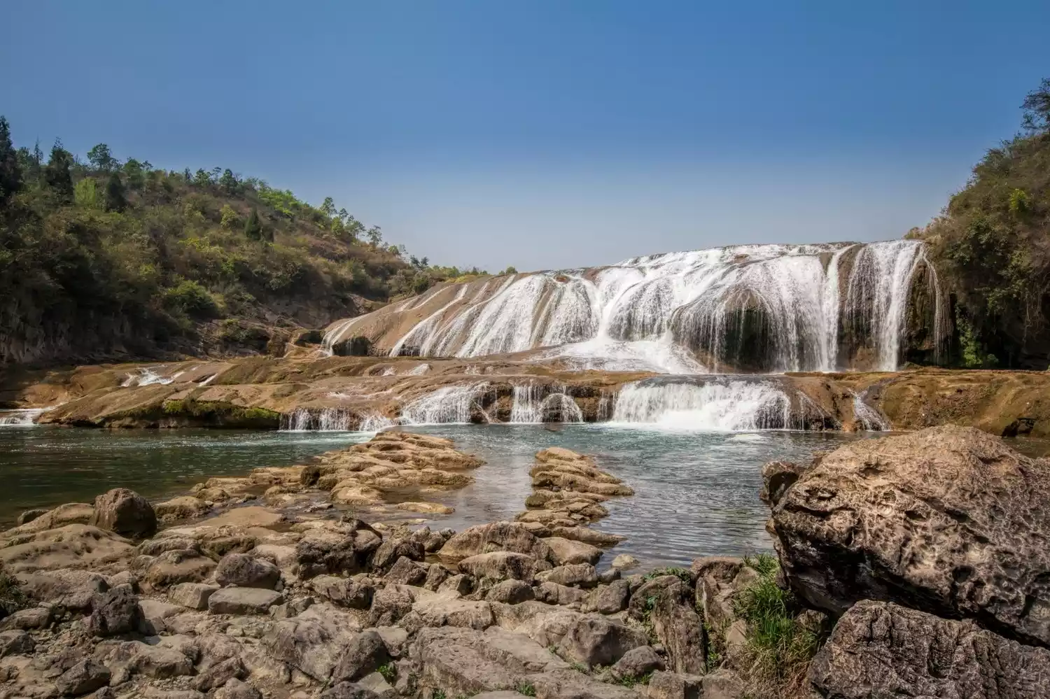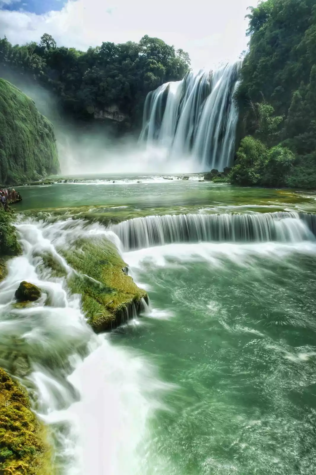 Doupotang Waterfall is located 1 km upstream of Huangguoshu Waterfall. The top of the waterfall is 105 meters wide and 21 meters high. It is the waterfall with the widest top in the Huangguoshu Waterfall group!
