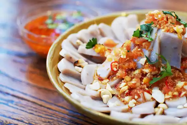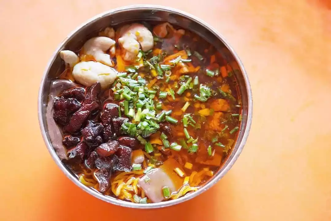 The main ingredients are pig intestines, fresh pig blood and rolled egg noodles, suitable for both young and old.
