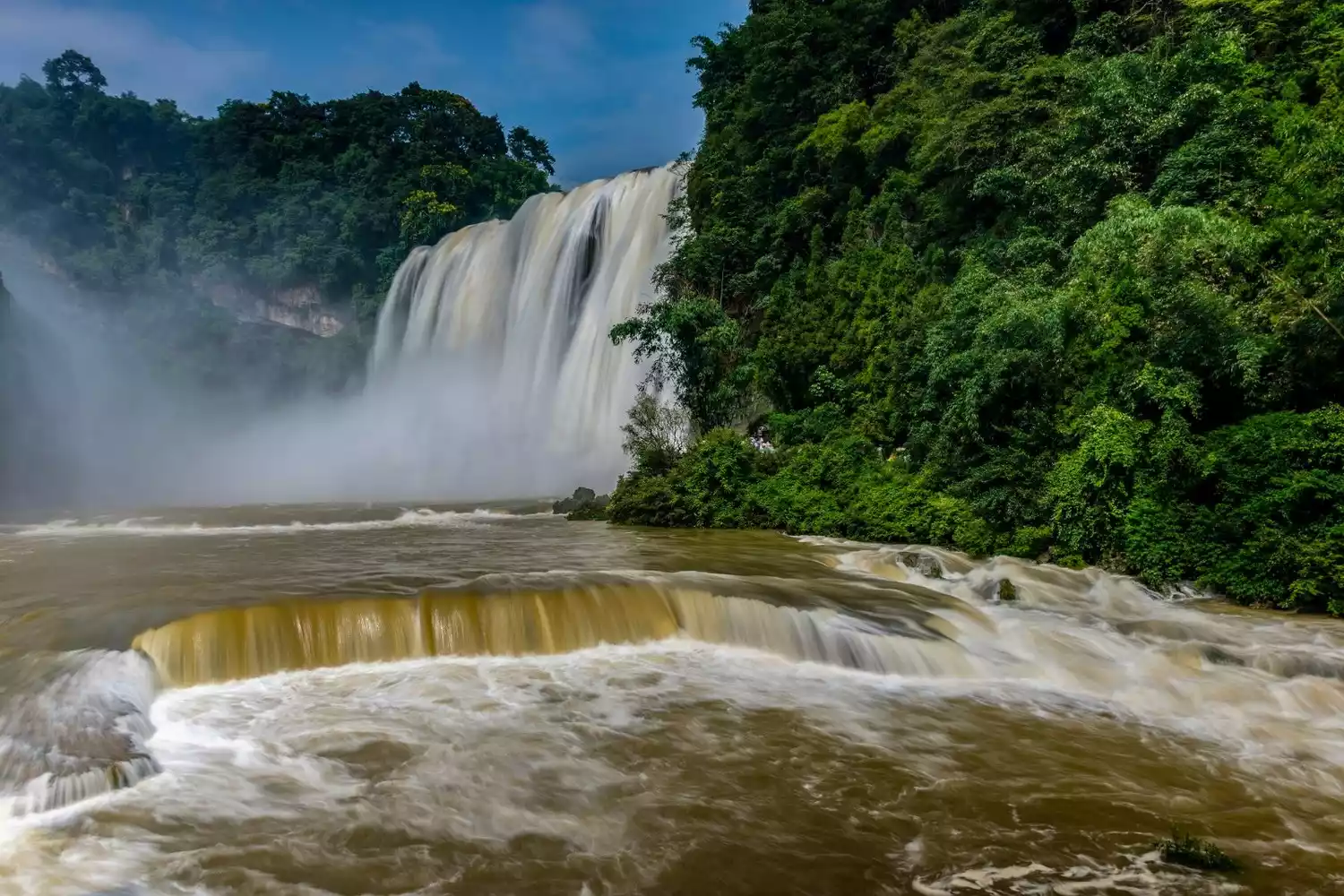 June to August every year is the peak flood season. The water flow in the Huangguoshu Scenic Area surges and the waterfall becomes powerful. This is the best time to view the Huangguoshu Waterfall.