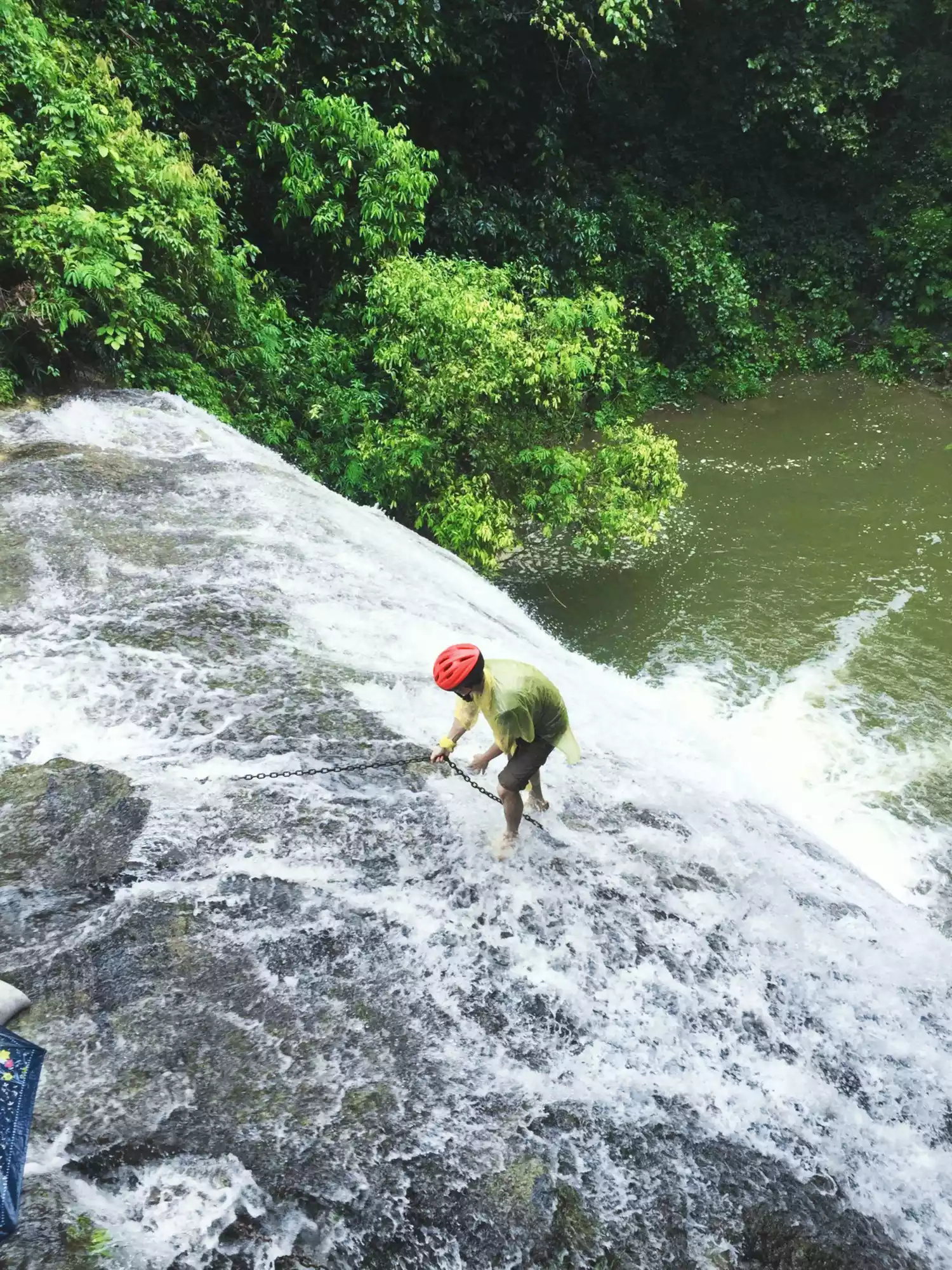 In terms of safety, the scenic area is equipped with a full set of hydrophilic measures, such as: non-slip straw sandals, shoe covers, raincoats, safety helmets, and waterproof mobile phone bags; there will be iron chains and steps to assist during the climbing process.