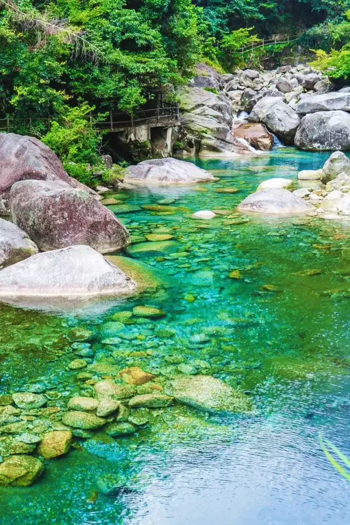The lack of publicity doesn't mean the scenery isn't stunning. Here, the water is like jasper, the mountains are dark blue, and the endless bamboo sea feels like a place you've stumbled upon. Lush green bamboo leaves sway in the breeze, and insects crawling on the grass are each preoccupied with their own little world.