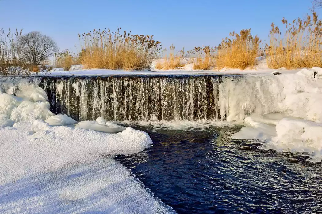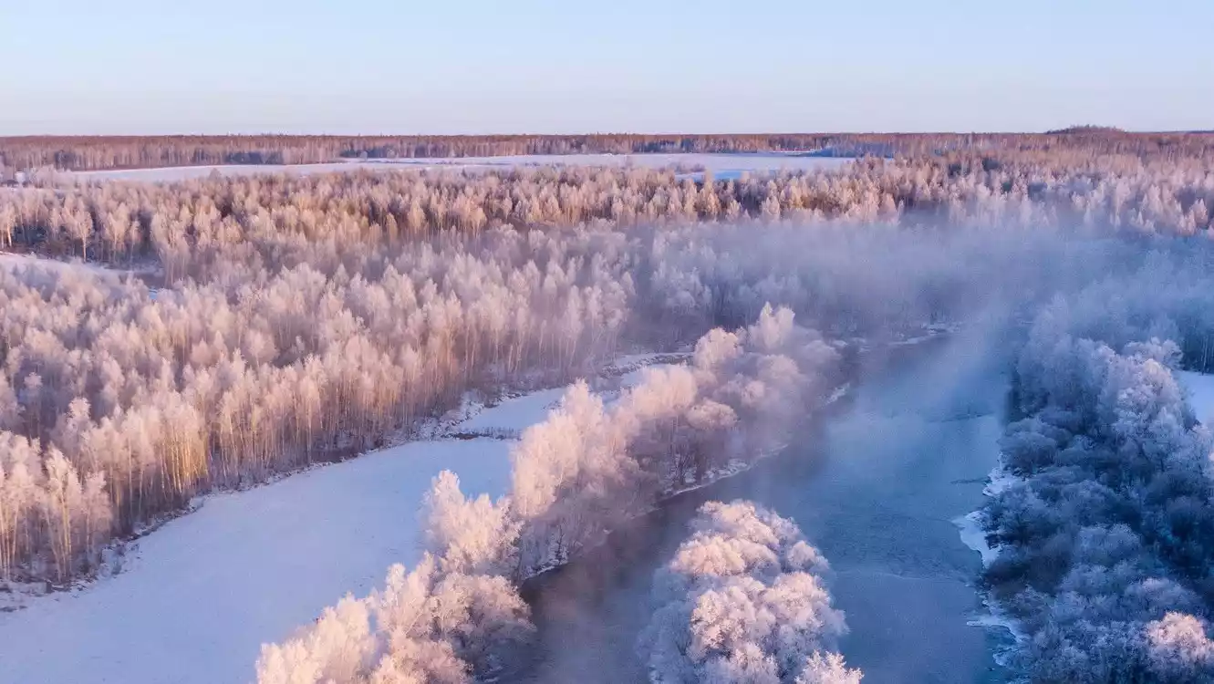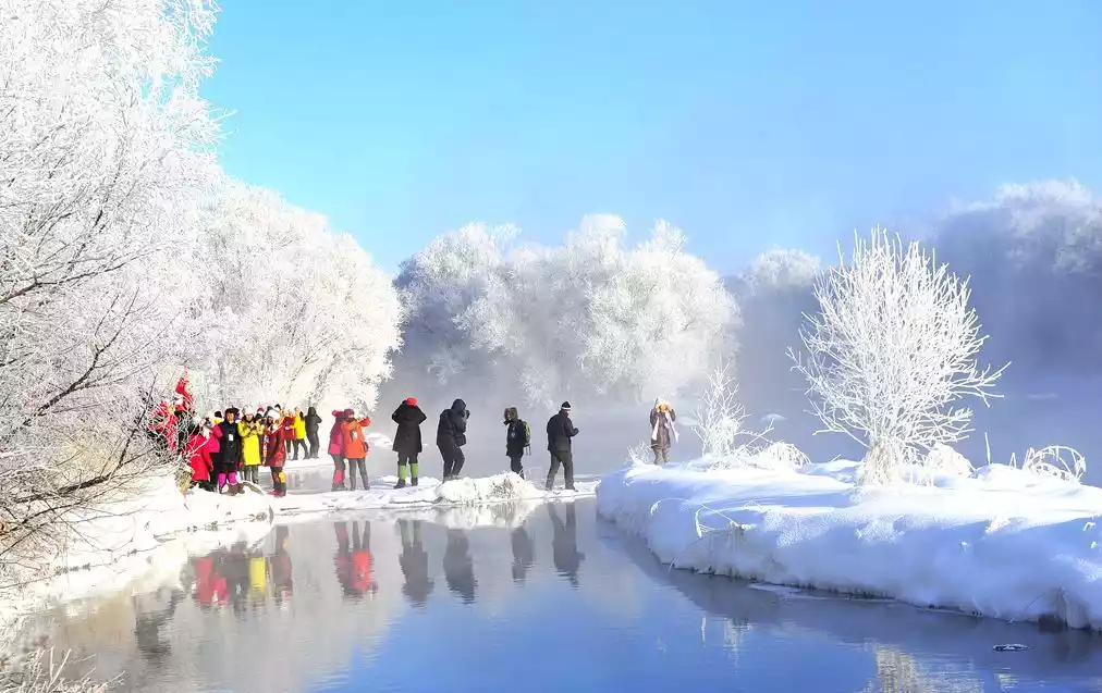 Due to the year-round operation of the hydropower station, the river does not freeze all year round, forming a spectacular sight of rime covering more than ten miles on both sides of the river.