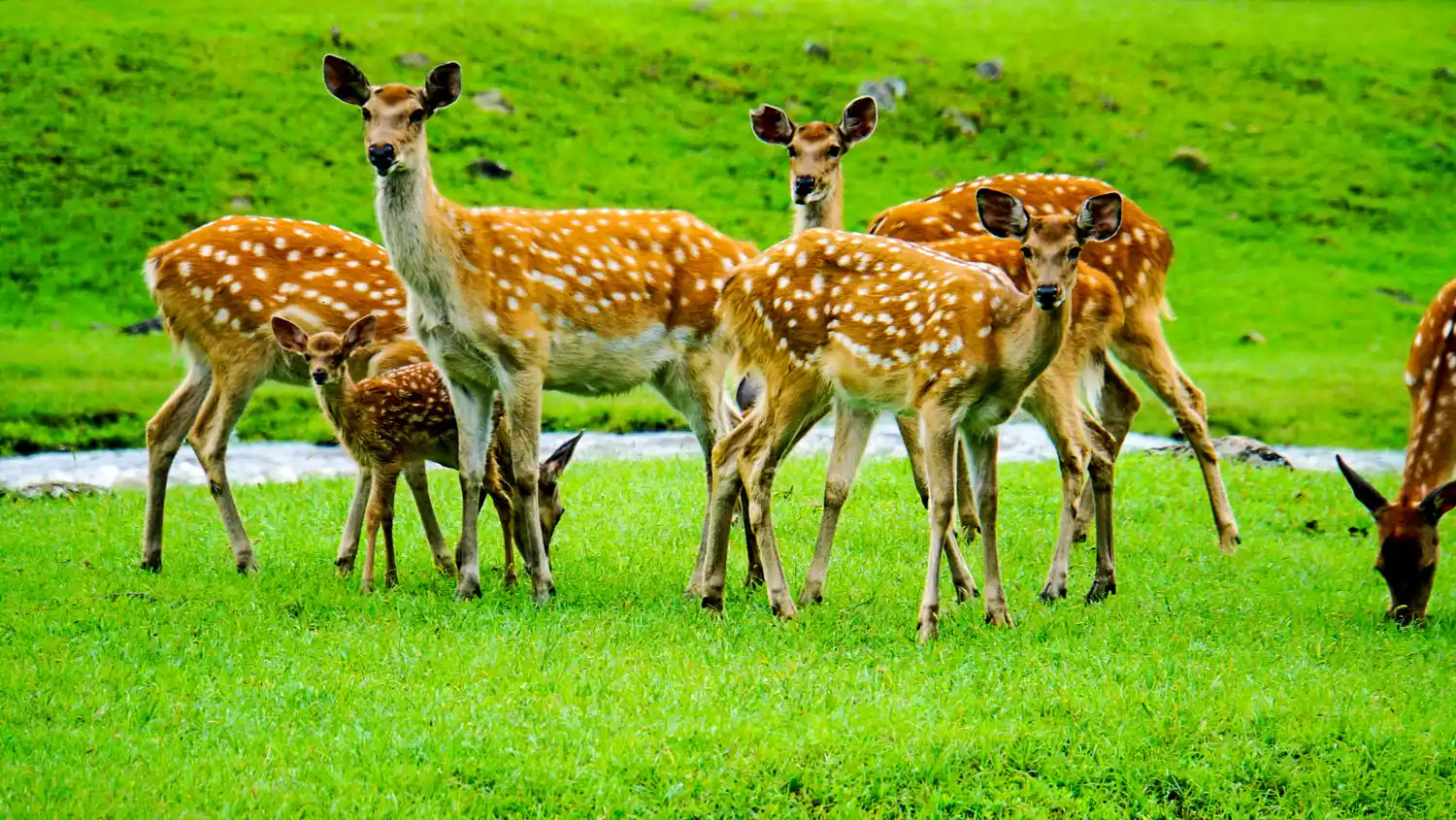 Surrounded by mountains and crisscrossed by streams, Jinshan Deer Park is a free-range deer park home to sika deer and Tianshan red deer.