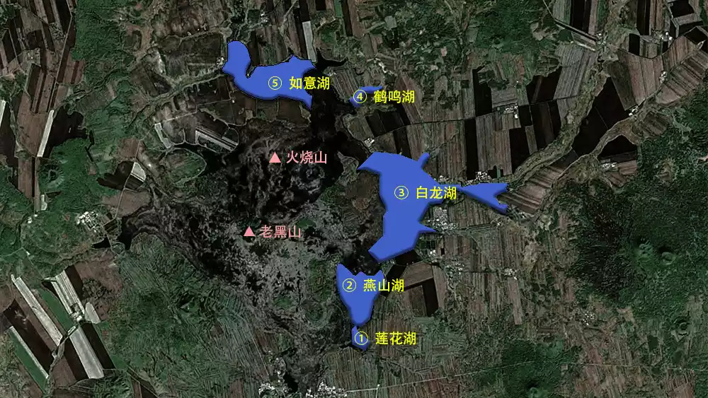 Wudalianchi is composed of five interconnected barrier lakes: Lianhua Lake (Pool 1), Yanshan Lake (Pool 2), Bailong Lake (Pool 3), Heming Lake (Pool 4), and Ruyi Lake (Pool 5). They are like five pearls, extremely unique.