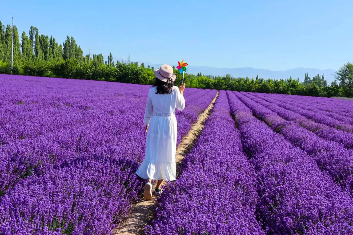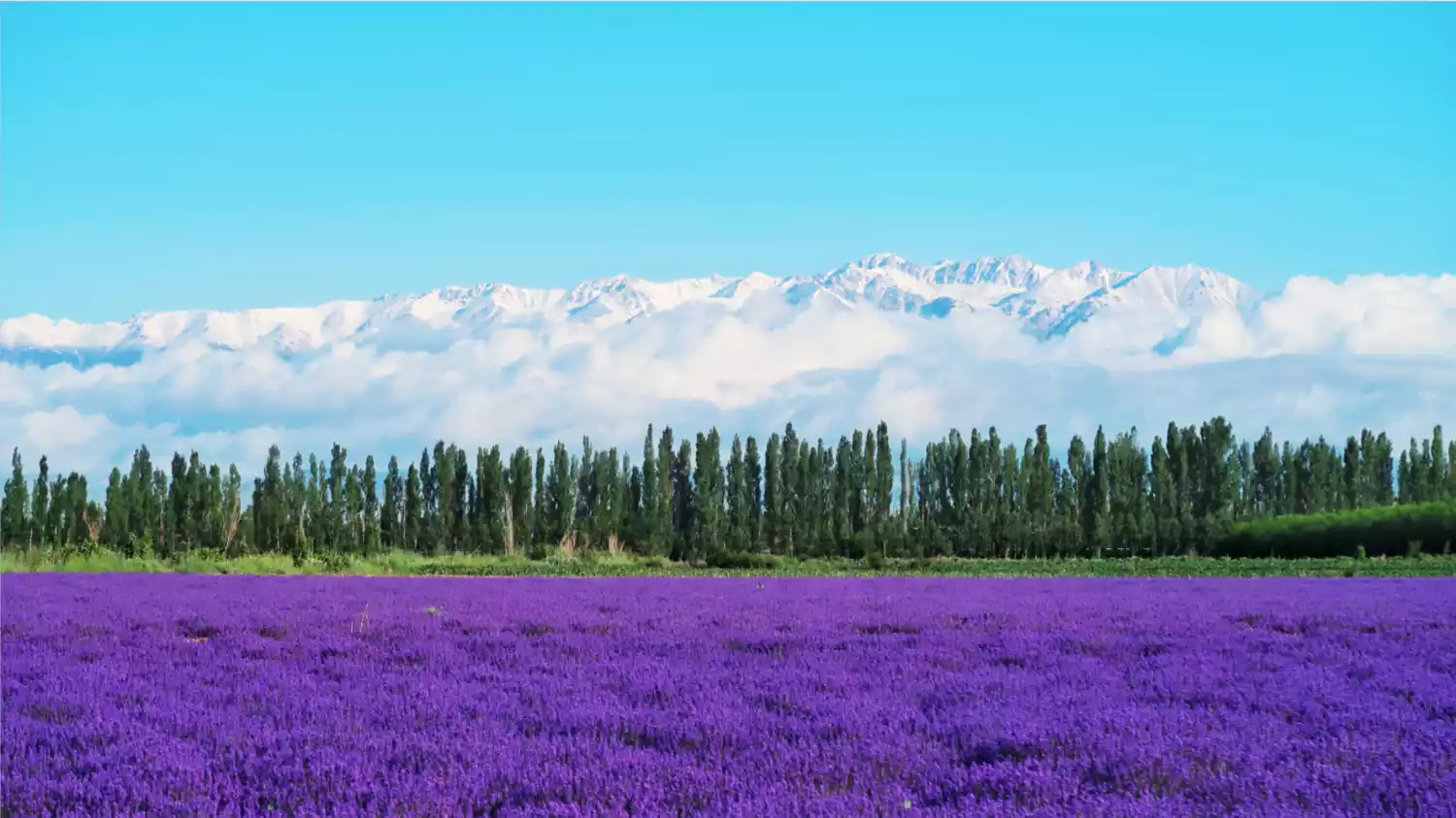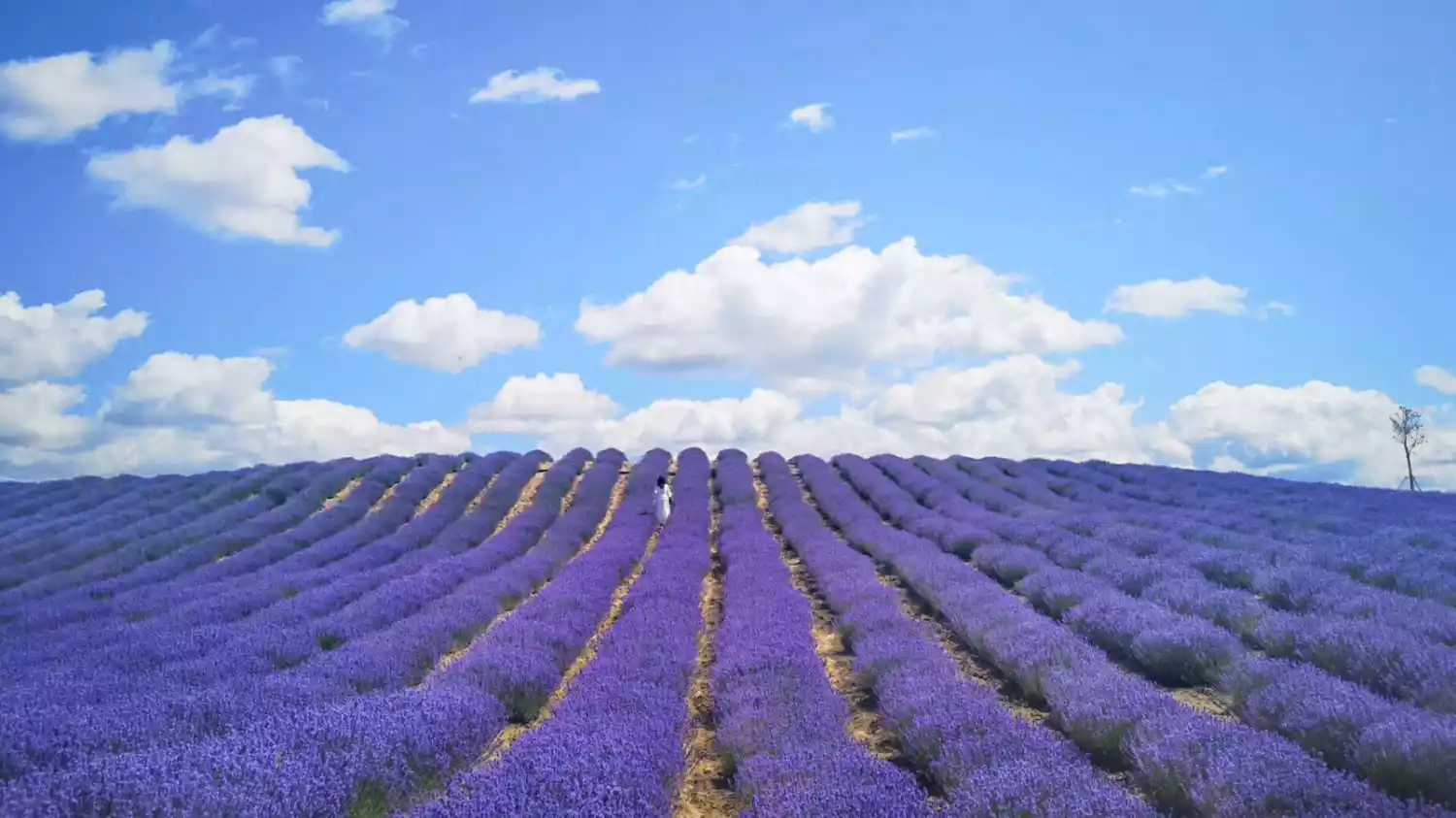 Every year when lavender blooms, large patches of blue-purple flowers grow in the vast fields, swaying in the wind like waves, and the wind is filled with refreshing floral fragrance.