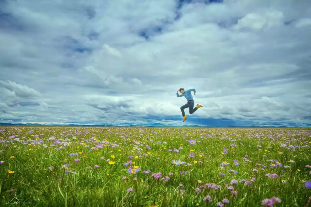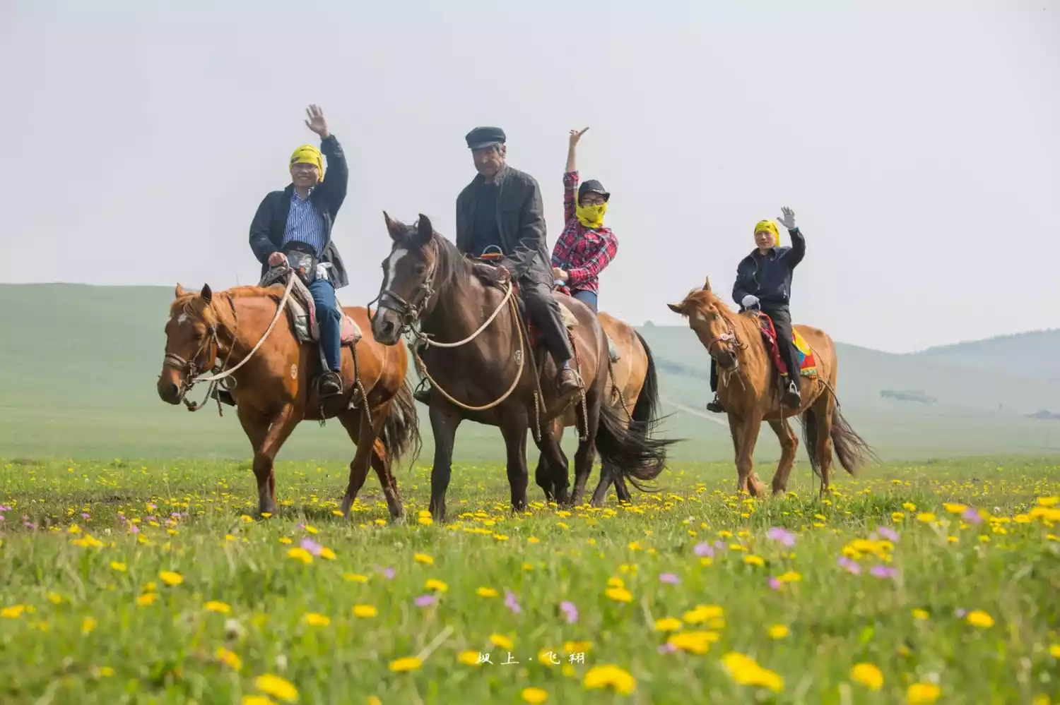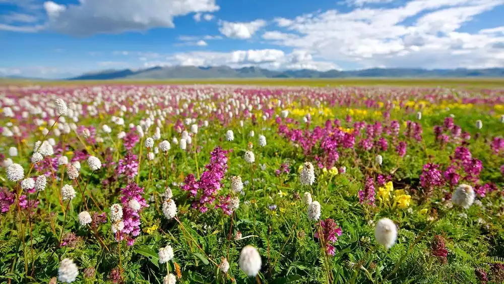 From mid-June to mid-July every year is the summer flower season on the grassland. Cotton-like clouds float in the blue sky, and the mountains and fields are full of wild flowers of various colors, especially golden lotus and wolfsbane, which are the most representative.