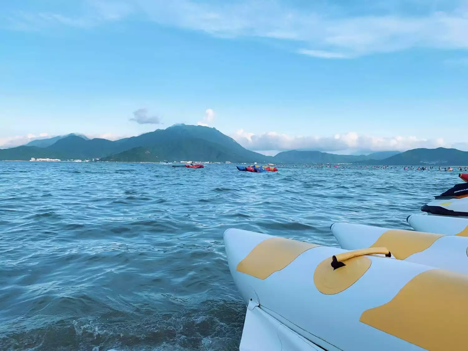 Green mountains on three sides gently embrace the crescent-shaped, 1,000-meter-long beach in the middle. Stepping barefoot on the silver beach, the soft white sand is as smooth as a carpet, and the waves occasionally rush up to kiss your feet, it's a very comfortable feeling.