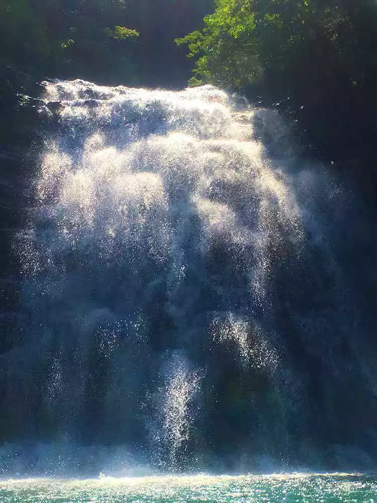 The waterfalls of Balanglongtan are like giant dragons leaping and tumbling, rushing all the way from the west coast into Yuya Creek, winding like a jade belt between the green mountains.