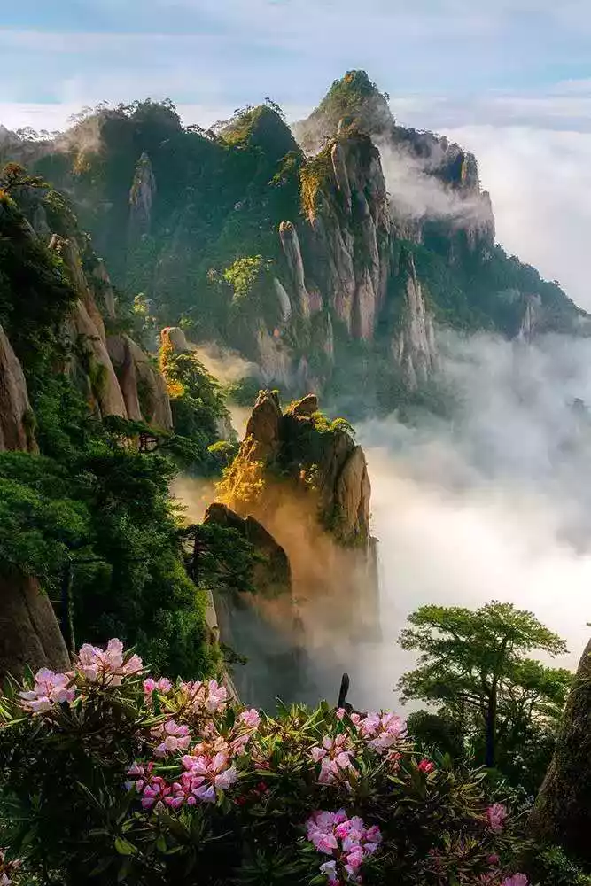 The sea of clouds at Sanqingshan is also a unique sight. Looking out from afar, the beautiful scenery appears and disappears amidst the swirling clouds and mist, creating an ever-changing wonderland, with clouds and mist transforming into a myriad of images.