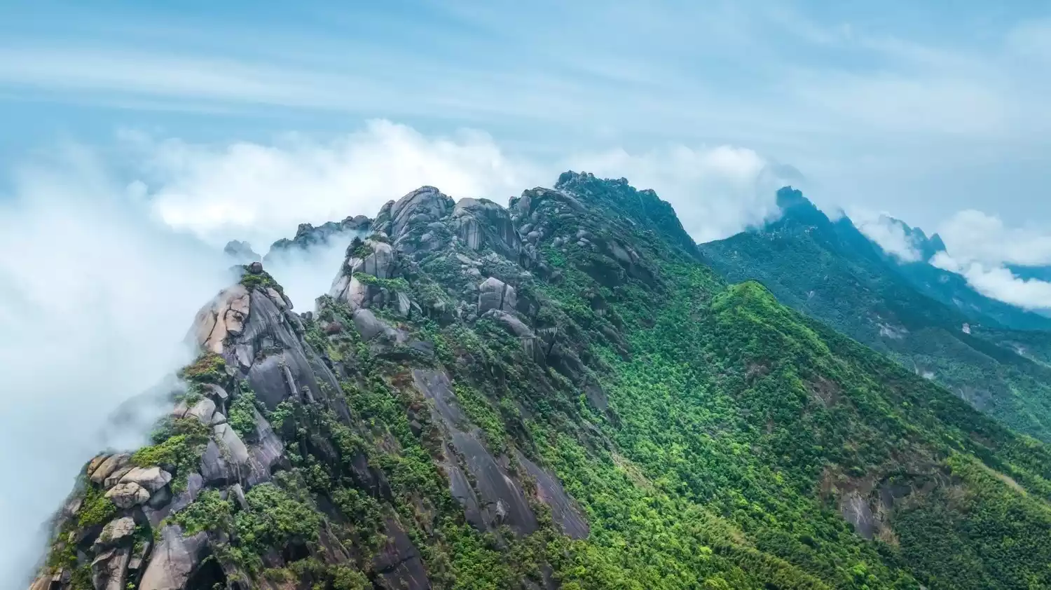 Lingshan, a rare ring of granite peaks, is renowned for its towering peaks. Its 72 peaks, each one strikingly beautiful and graceful, offer a myriad of forms. From afar, Lingshan resembles a reclining beauty; from above, it soars through the sky like an eagle; and from below, it resembles a gigantic dragon, entwined across the northeastern Jiangxi landscape.