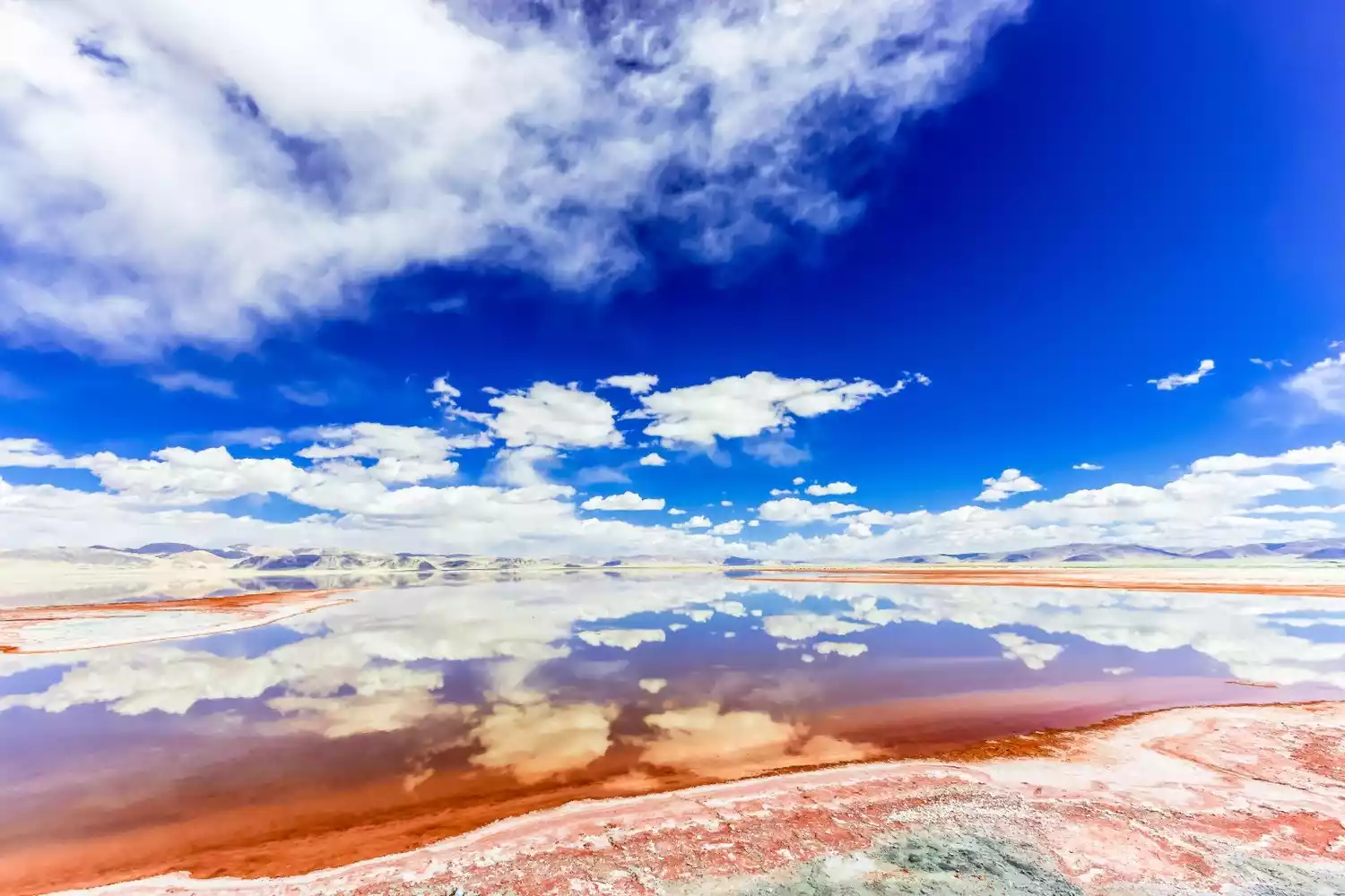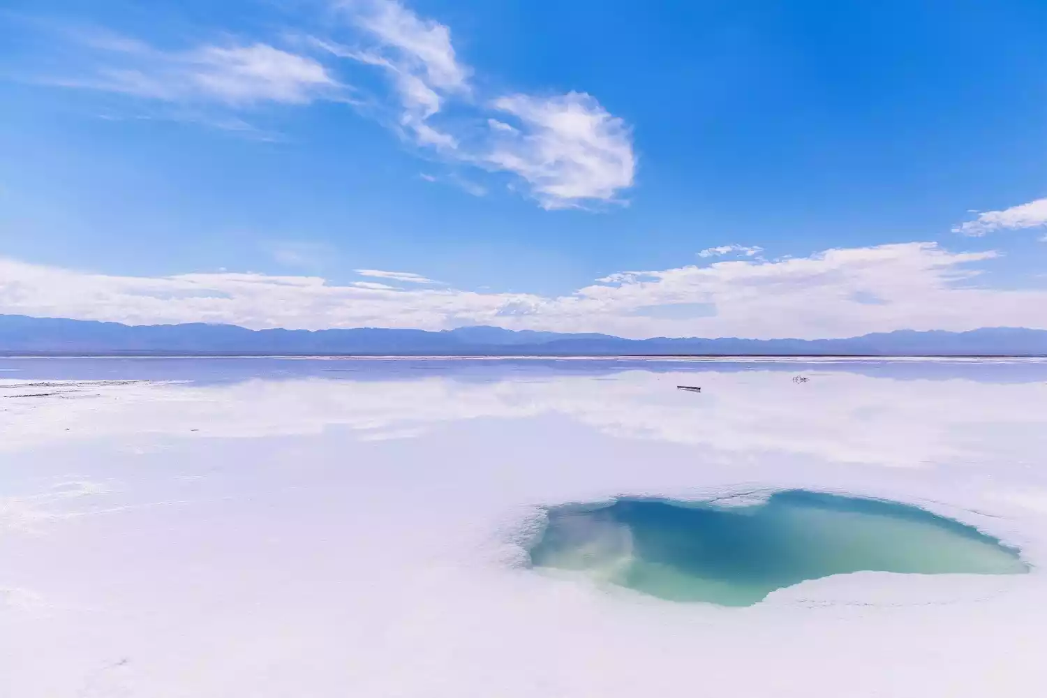 Chaka Salt Lake is a place that makes people dream. It is a white lake with water reflecting the sky and sky connecting to water. Cotton-like clouds are floating in both the sky and the water. There is no obvious boundary between the sky and the lake. For a moment, you can't even tell which is the real world and which is the illusion in the lake.