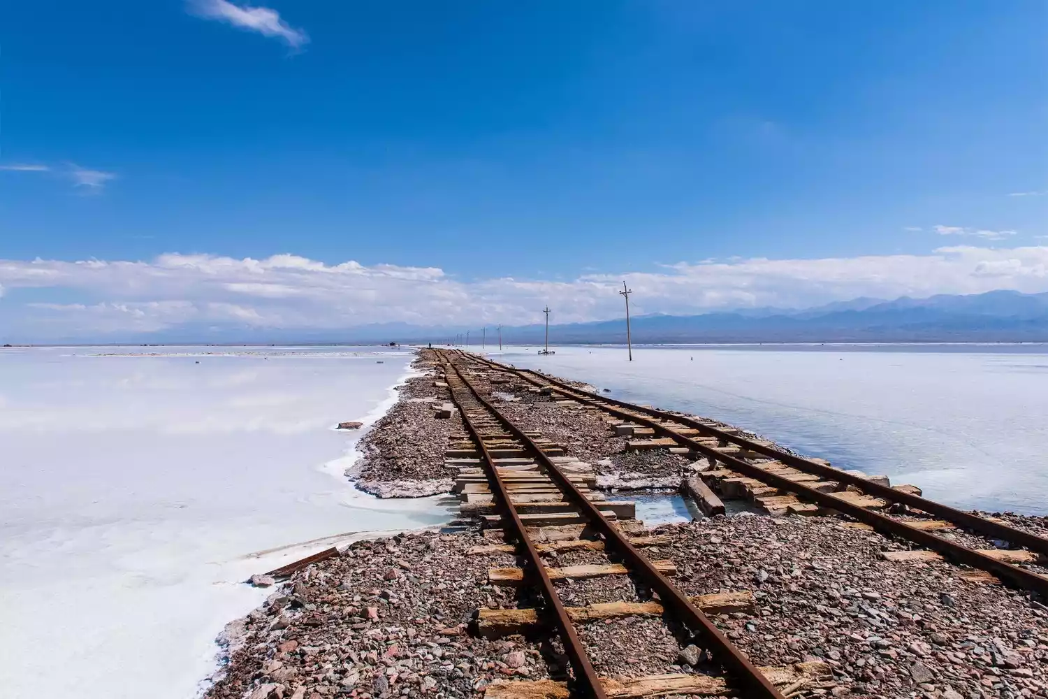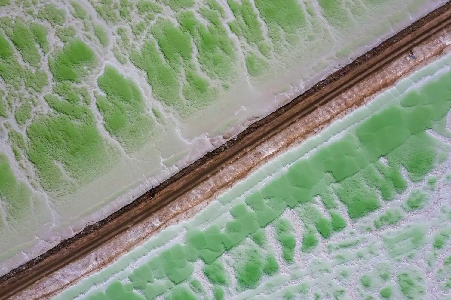 There are layers of salt crystals, salt flowers in various shapes, and the world-famous 32-kilometer "Ten Thousand Meter Salt Bridge". It is built purely of salt crystals. The road leading to Kunlun Mountain divides the lake into different blocks, and appears blue or green under the changing light.