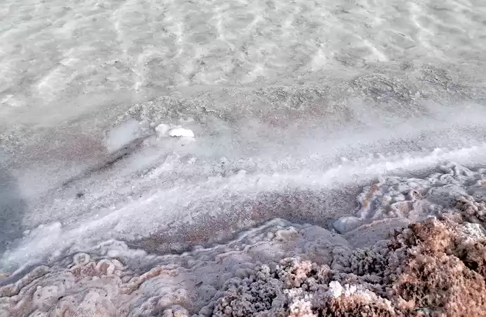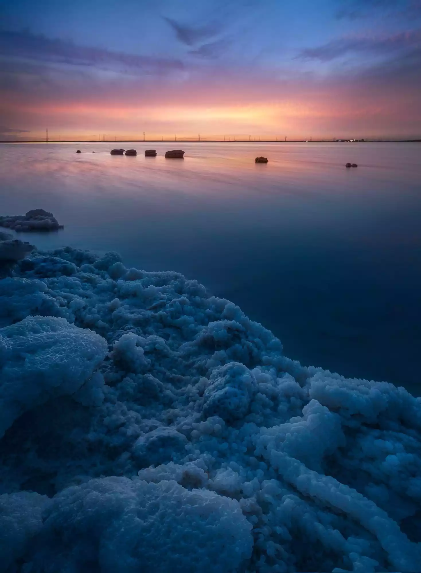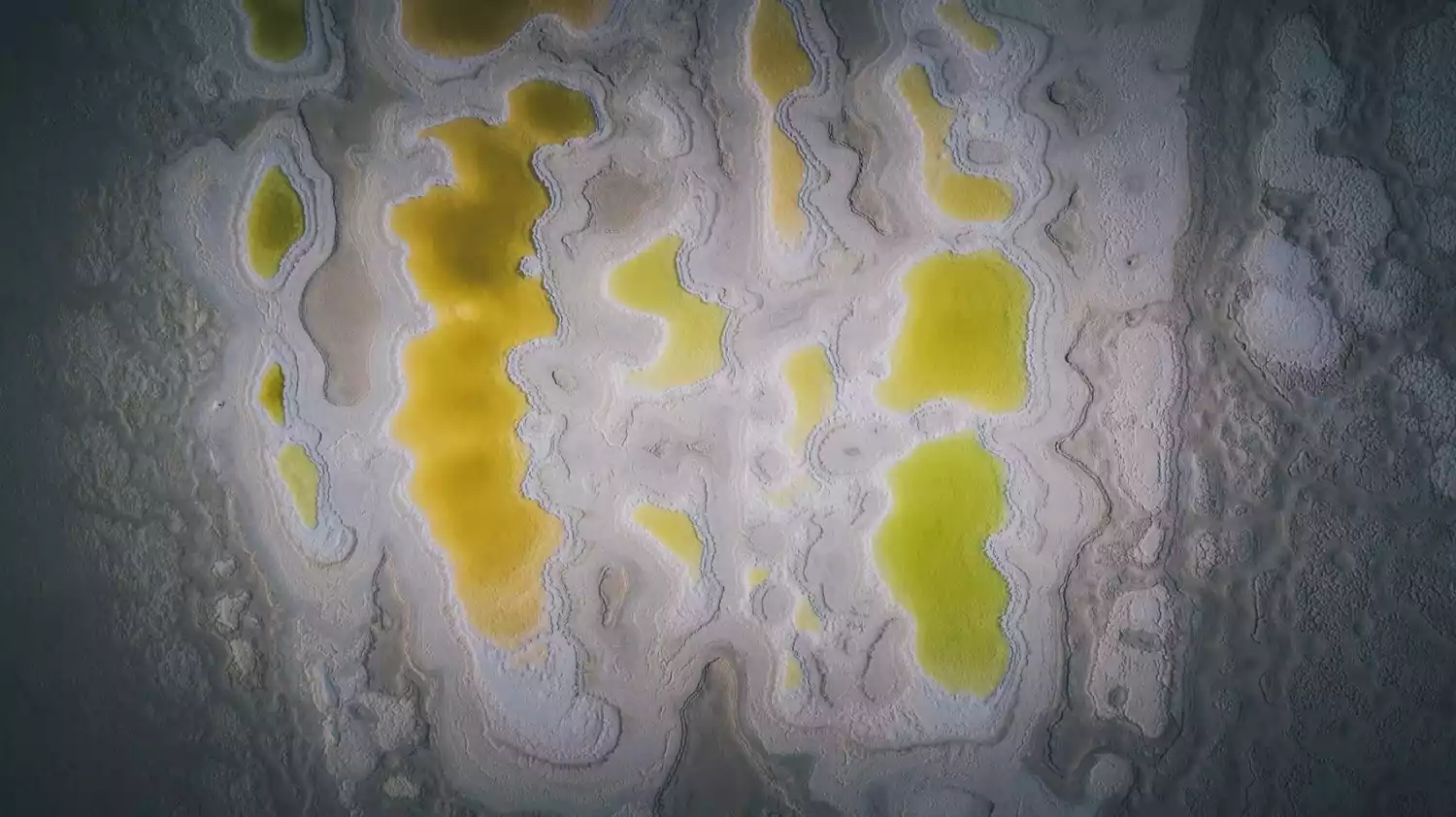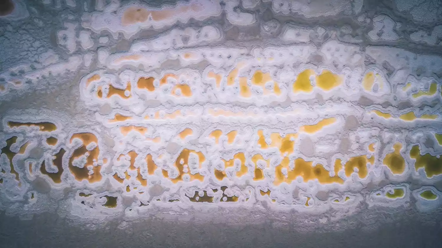 The salt crystals in the lake give the lake surface different patterns, without the difference in salt concentration, making the lake water appear colorful under the refraction of light.