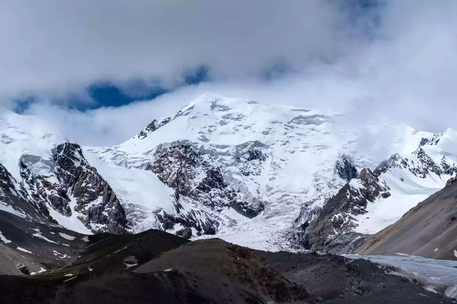 These mountains are generally 5,000-6,000 meters above sea level. As the altitude rises, the top of the mountain enters the cryosphere, where snow accumulates all year round. After being compacted year after year, it moves under its own gravity and pressure to form glaciers.