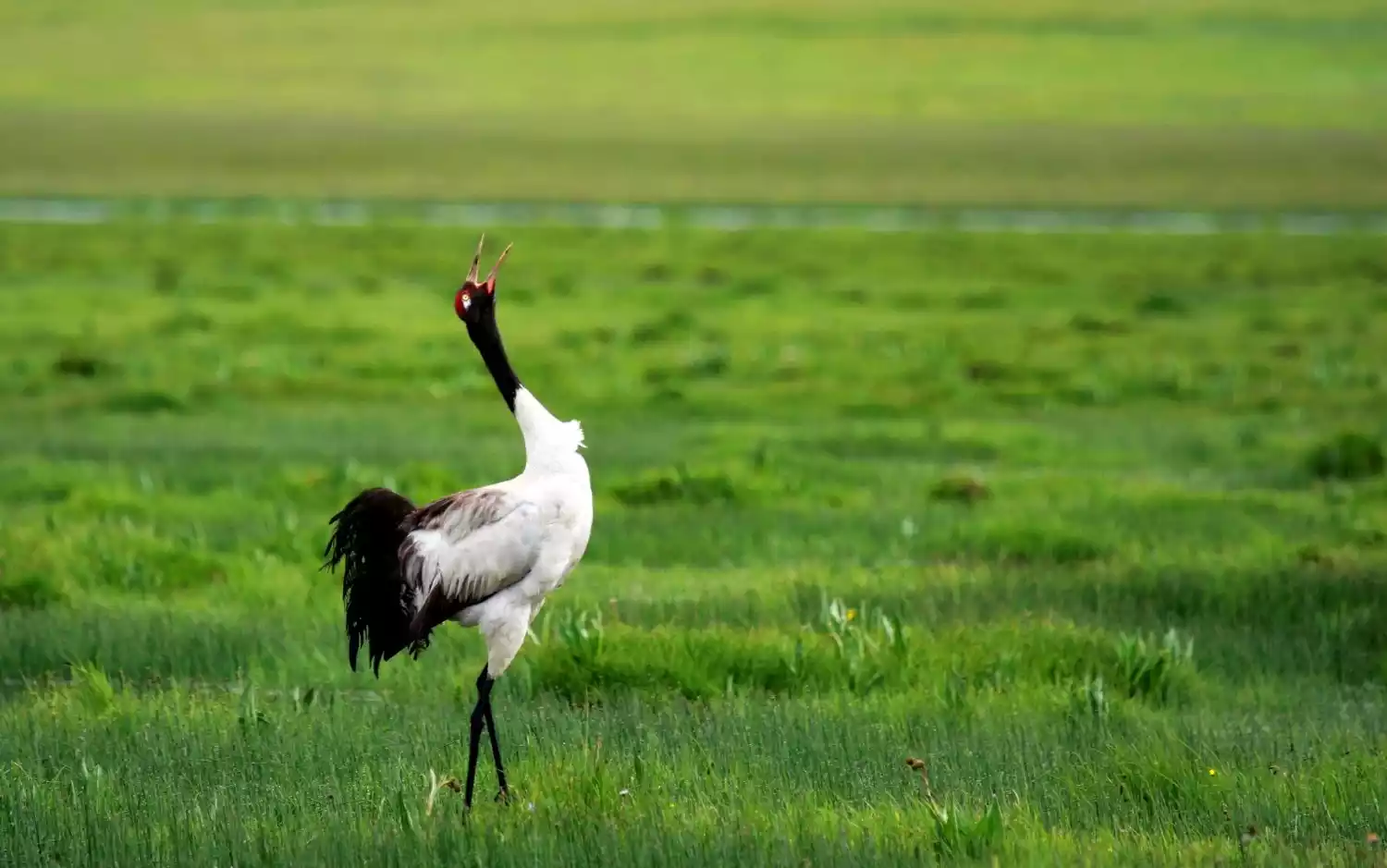 The only crane in the world that grows and breeds on the plateau, it is called "fairy crane", "divine bird" and "auspicious bird" by Tibetan people. It often forages in the shallow waters of lakes in the Sanjiangyuan area.