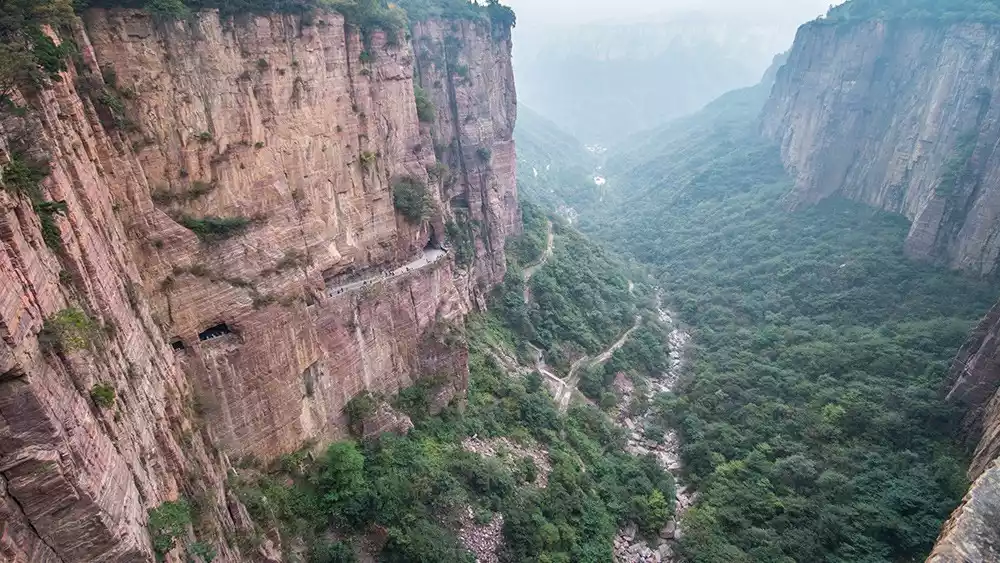 Standing on the cliff, one can overlook the panoramic view of Guoliang Hanging Wall.