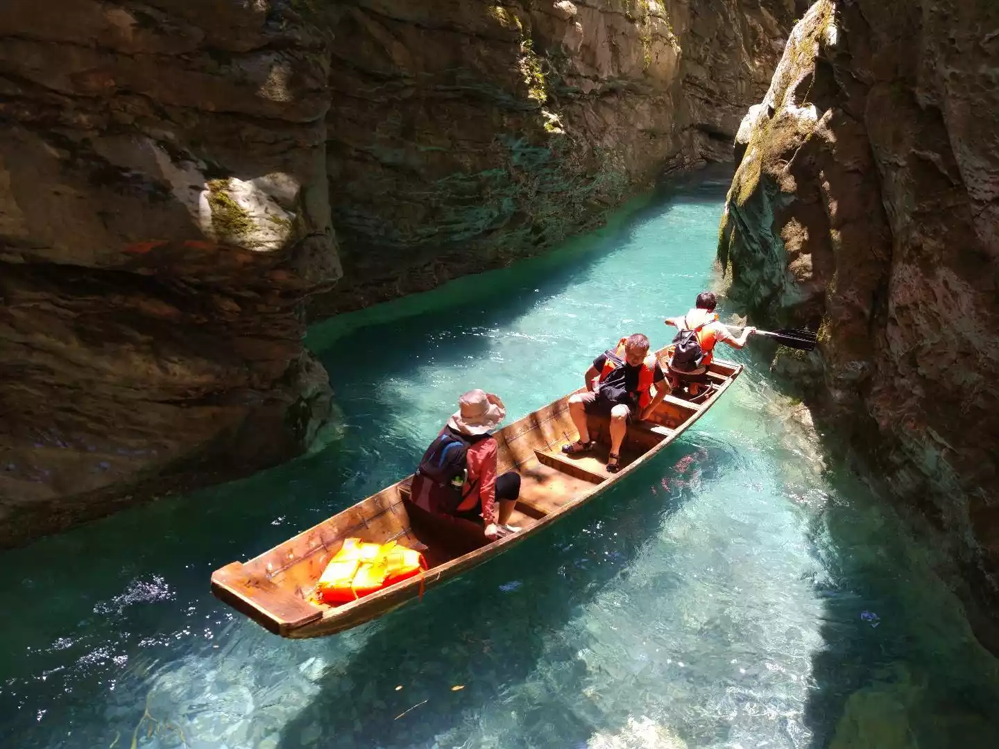 We could see the bottom of the clear water at a glance, and the beauty here was still intoxicating. After landing, we walked on the plank roads on both sides of the canyon, enjoying the scenery along the way. The scenery you appreciate is different from different angles.