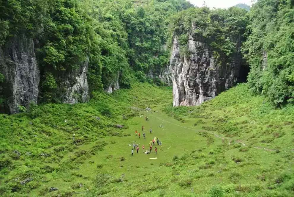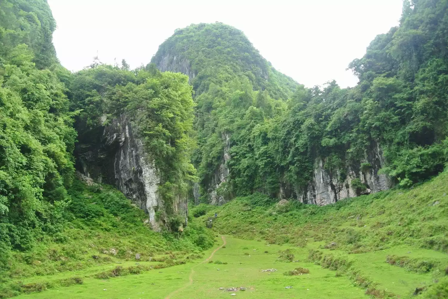 Following the ancient Qingjiang underground river, we passed through the marvelous landscape of three caves and two day pits, feeling the powerful charm of water. When we passed through the Big Dragon Gate with lighting equipment, another wonderful scene appeared - the large lawn in the canyon, one of the filming locations of "Nie Yinniang", where several lambs and a cow were eating leaves and grass harmoniously and leisurely.