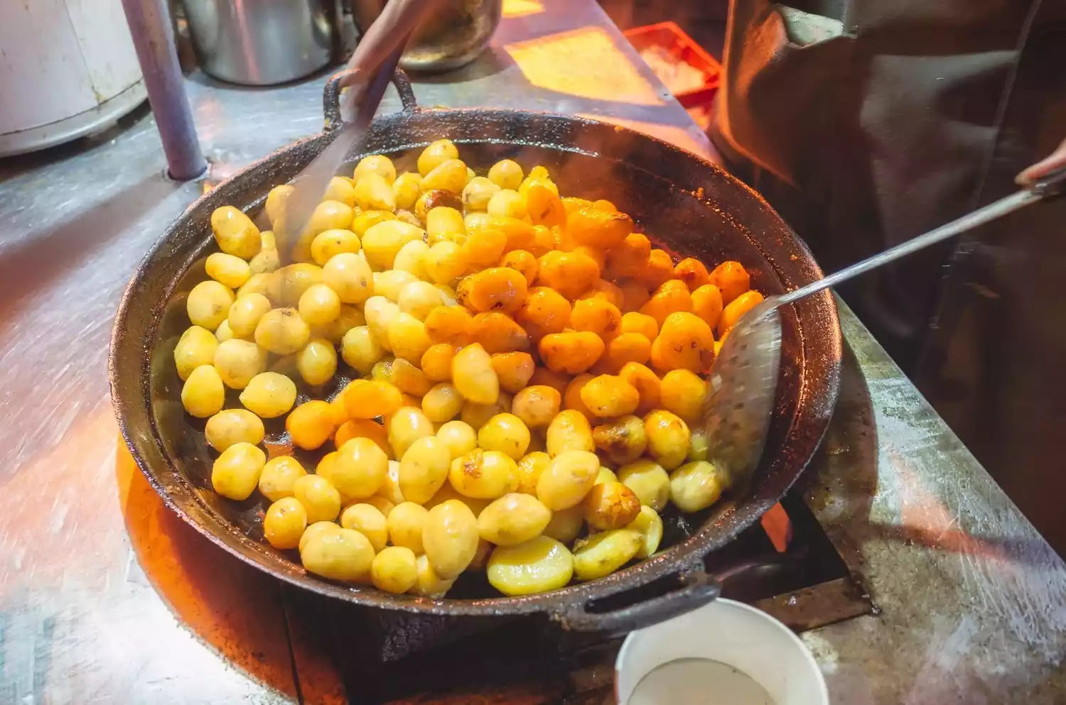 The small potatoes cooked in the oven are not greasy when eaten. The wrinkles are formed by being fried in a high-temperature oil pan, but the inside is still soft and sweet. Sprinkle them with seasoning and chili water, and they become a carbohydrate bomb that no one can resist.