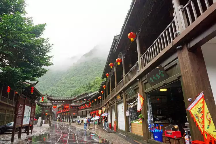 The sightseeing bus in the scenic area also speeds very fast. The visitor center is at the foot of the mountain, and the starting point of the cable car and rafting in Dajue Mountain are both halfway up the mountain, which is still a very long distance. On the way, you will pass by the Dajue Mountain Ancient Town, where the sightseeing bus will stop. You can ride any bus between these three points.