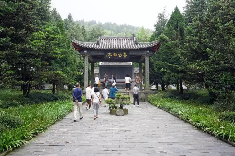 Entering the second courtyard of Xiandu Temple, you'll find the Lugong Stele Pavilion. The four large characters above the pavilion's facade were inscribed by modern calligrapher Cui Xuelu. A stele of Yan Zhenqing's "Record of the Immortal Altar on Magu Mountain," known as "the world's finest regular script," stands in the center of the stele corridor. Standing 2.7 meters tall and 3.9 meters wide, it stands as a monument in the history of Chinese calligraphy.