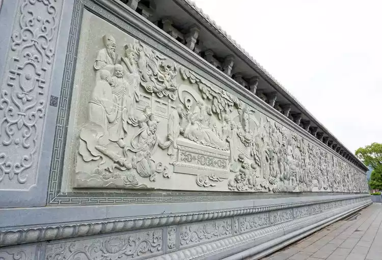 The giant long relief in front of the temple tells a series of stories about the Buddha Shakyamuni from his birth to his studies to his enlightenment and finally to Nirvana. The entire life of Shakyamuni is depicted on this relief.