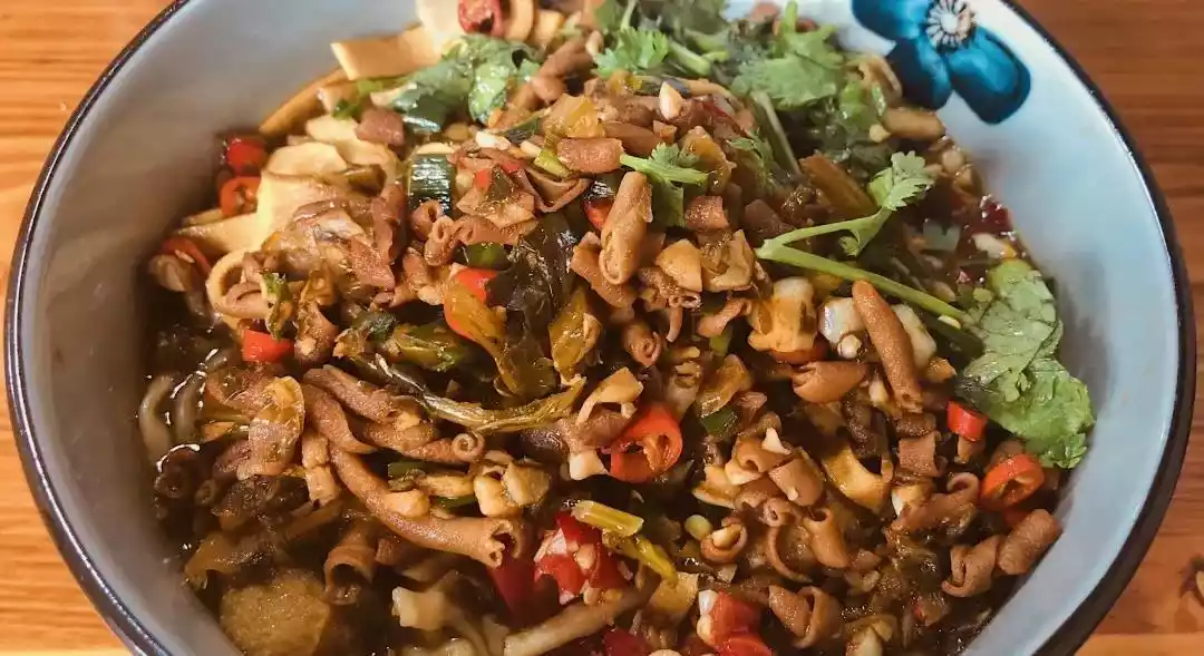 Besides the top-rated beef noodles, Yueyue Chicken Intestine Noodles is another internet sensation in Lanxi. Its generous helping of toppings is instantly appealing to offal lovers, while the traditional handmade noodles leave you slurping non-stop.
