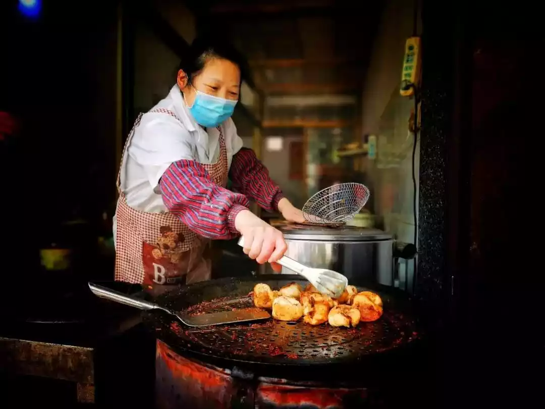 There are pastry shops all over the streets and alleys here, and the most famous one must be the six-fingered pastry. The chef Liu Liqing who makes the pastry was born with six fingers.