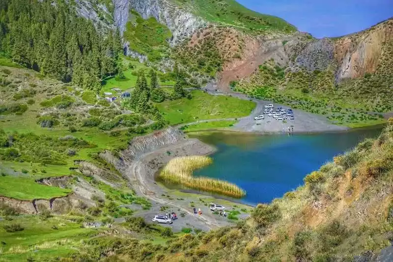 Bayingamen also boasts a hidden gem: Xiaohaizi. Nestled beside the Bayingamen Scenic Area, it's surrounded by grasslands, mountains, and forests. Its tranquil surface, framed by the blue sky and sunlight, is remarkably tranquil, shimmering in a faint blue, like an emerald. Nearby lies Dahaizi.