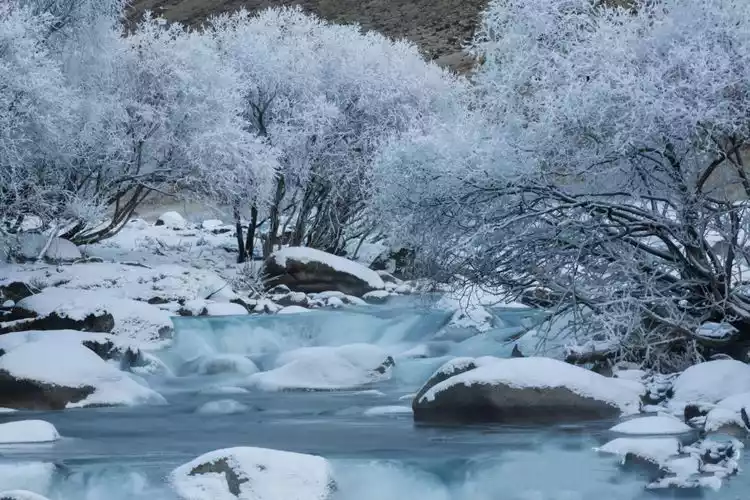 In autumn, the entire valley is covered in golden yellow, with layers of trees dyed in a dazzling array of colors; in winter, there is a charming rime landscape. Here, no one disturbs you, the environment is peaceful and the river flows quietly.