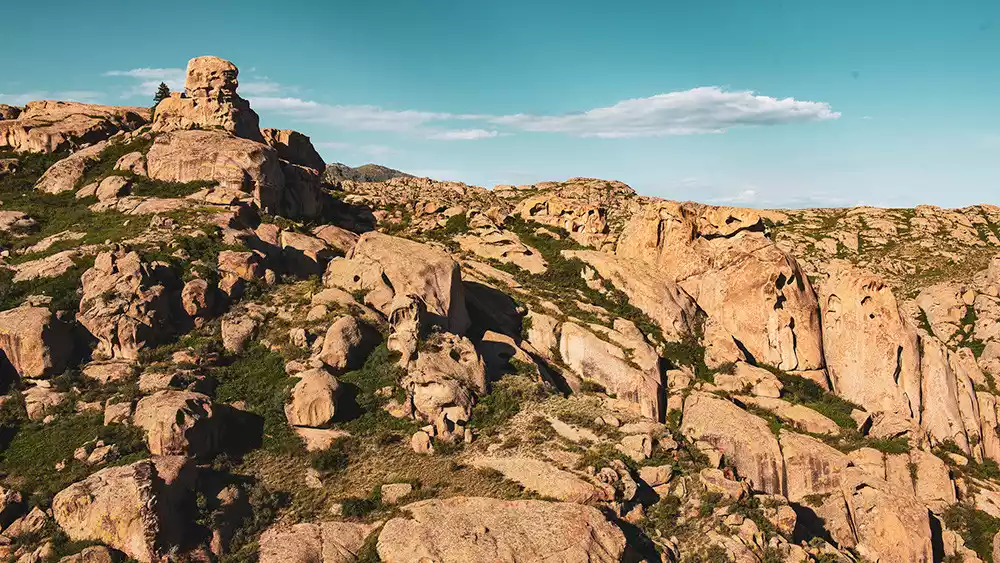 Strange Stone Valley is the world's largest scenic spot featuring granite porphyry rocks, located at the foot of the Shala Tau Mountains, a branch of the Alatoo Mountains. Locals call the area "Kuoytash," meaning "sheep-like rocks everywhere," because the smooth boulders, when viewed from a distance, resemble a flock of sheep huddled on the hillside.