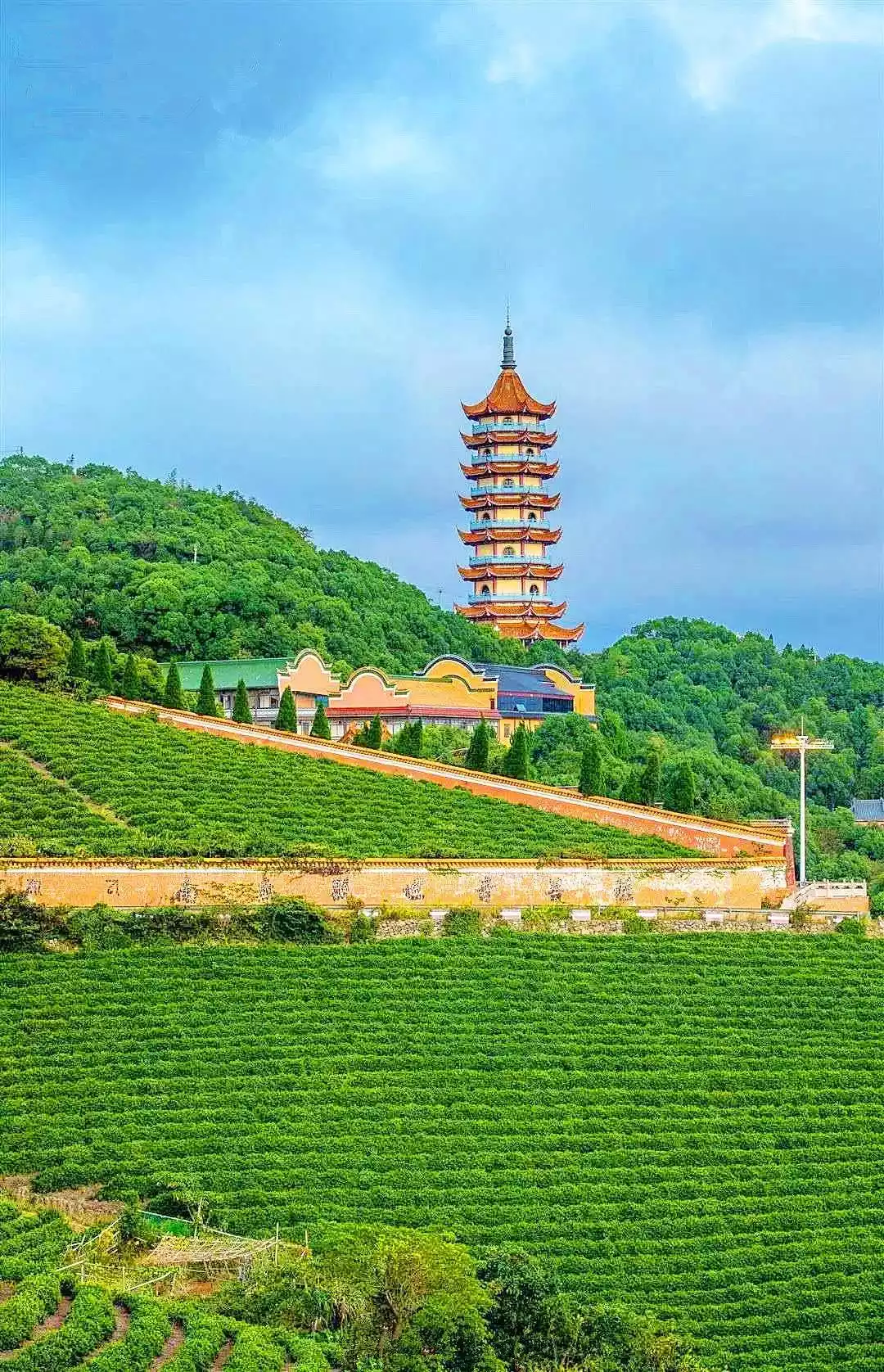 The "Penglai Xianzhi" tea grown here is one of Zhejiang's ten famous teas and a top-grade green tea. If you arrive early, you can see a thin layer of mist shrouding the tea garden, and the gentle breeze brings a lingering fragrance of tea.