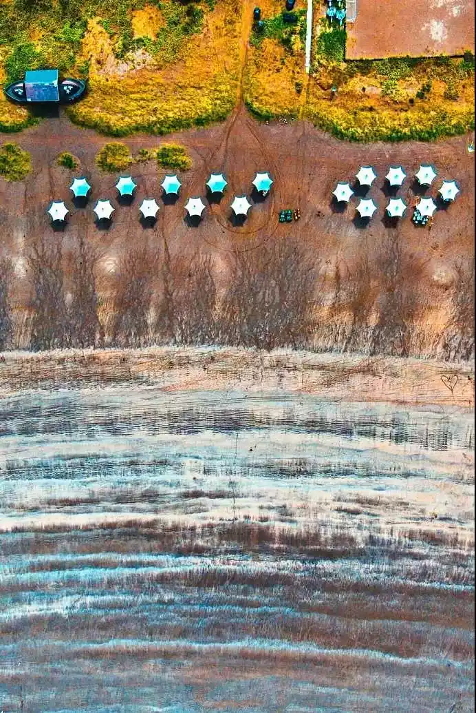Ten independent tents form a semicircle, nestled right next to the beach, offering 360-degree views of the ocean. While the rooms are small, they offer everything you need. On quiet nights, listen to the natural AMSR sound effects of the waves, open the glass roof, and reach out to touch the Milky Way.