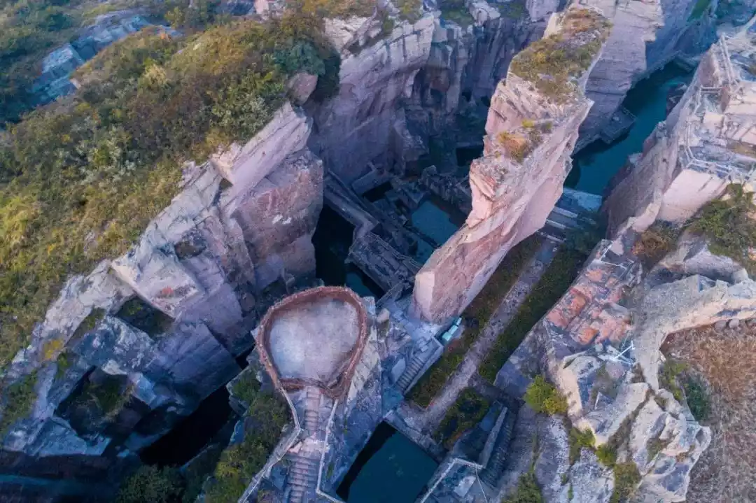 This is the ruins of a former stone quarry. Over 500 years, generations of local residents have carved away at it with chisels and hammers, creating this magnificent stone wall.