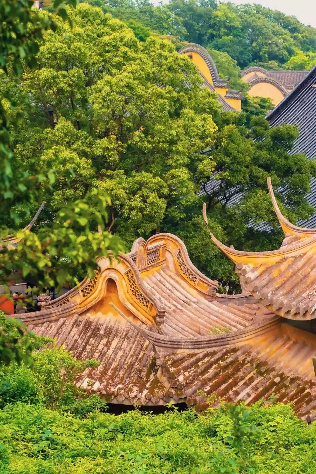 The 11-story Jade Buddha Pagoda houses over 200 jade Buddhas, towering majestically. Devotees flock to the pagoda to pay their respects, and from afar, the curling incense smoke blends with the mist, resembling "Guanyin riding on mist."