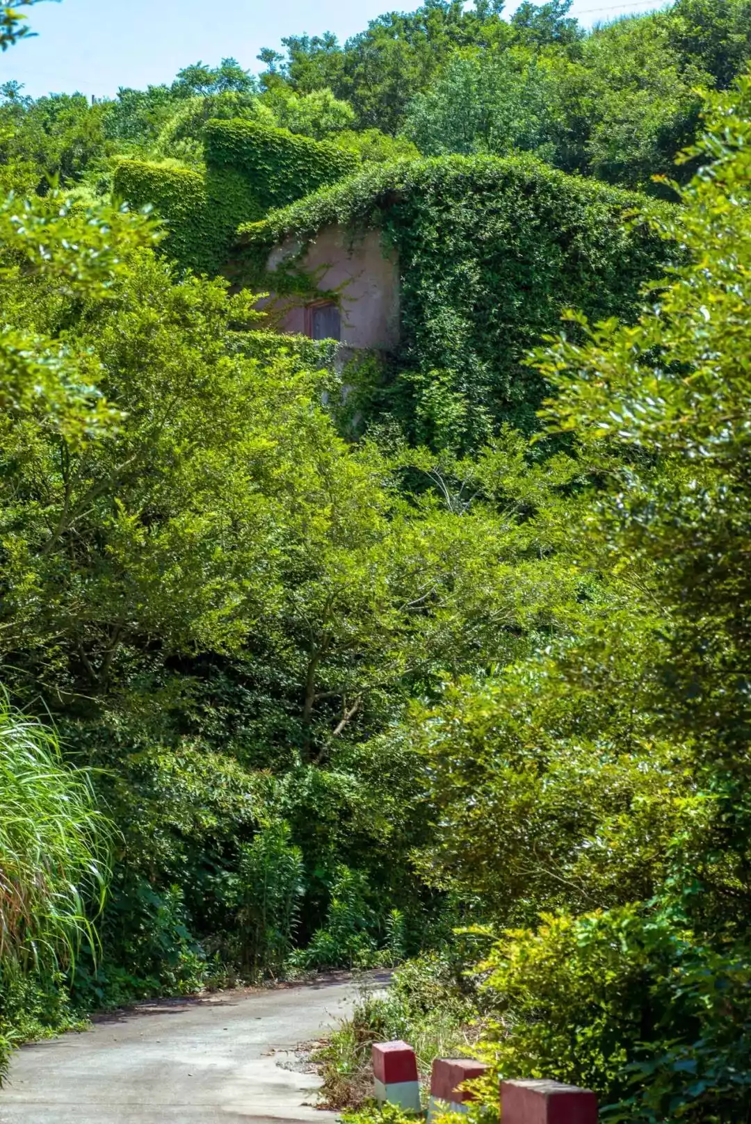 The once prosperous fishing village is now occupied by wild grass and vines, densely covering the houses built on the mountainside, making it a great place to check in and take photos.