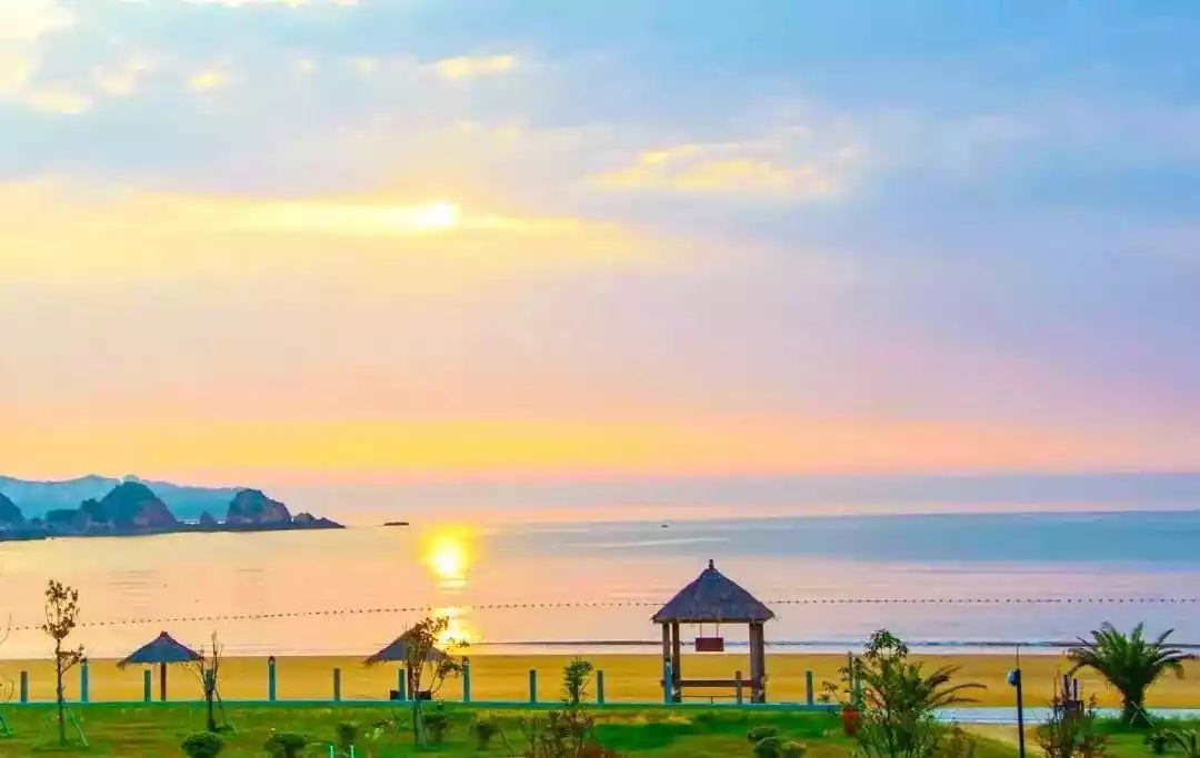 The "Double Dragons Playing with a Pearl" beach, which is formed by the connection of Liangzhi Beach and Shalong Beach, has fine and soft sand, thick sand layer and flat terrain. When the tide is low, people often pick up shellfish such as clams and mud snails on the beach.