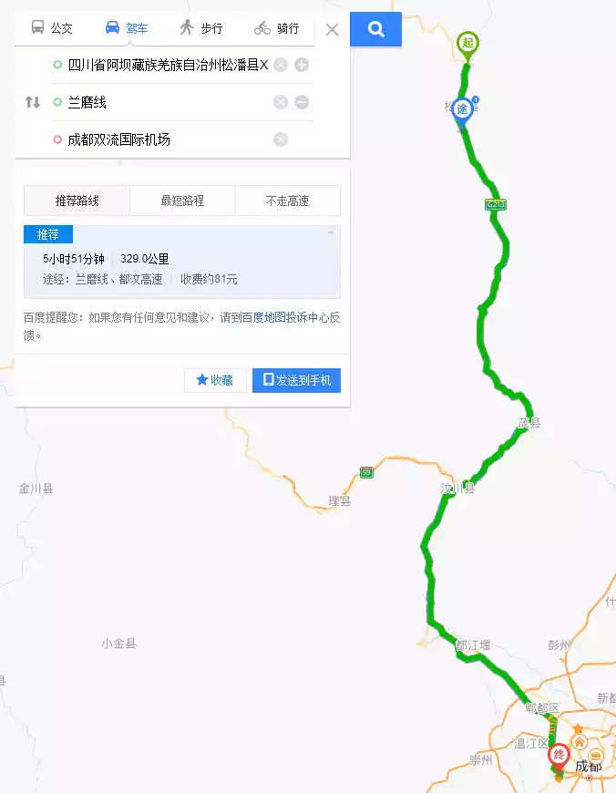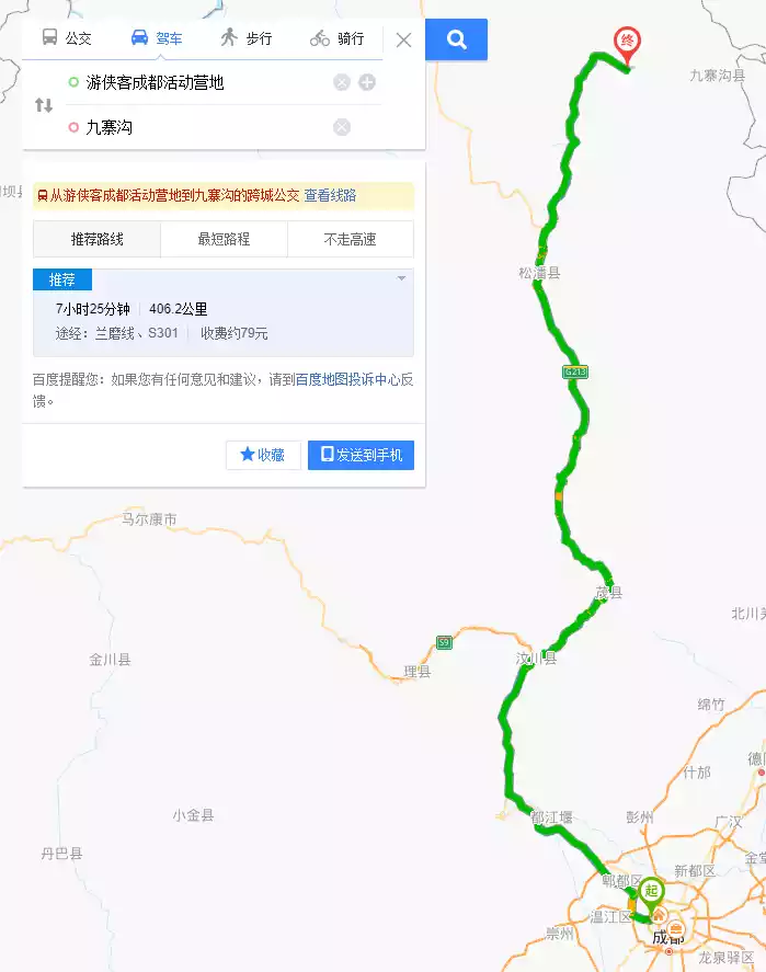 Chengdu - Wenchuan - Maoxian - Diexi Lake - Songpan Ancient Town - Chuanzhu Temple - Jiuzhaigou Entrance Hotel, the entire journey is about 400km and takes about 8 hours.