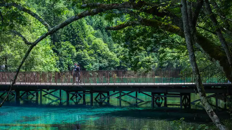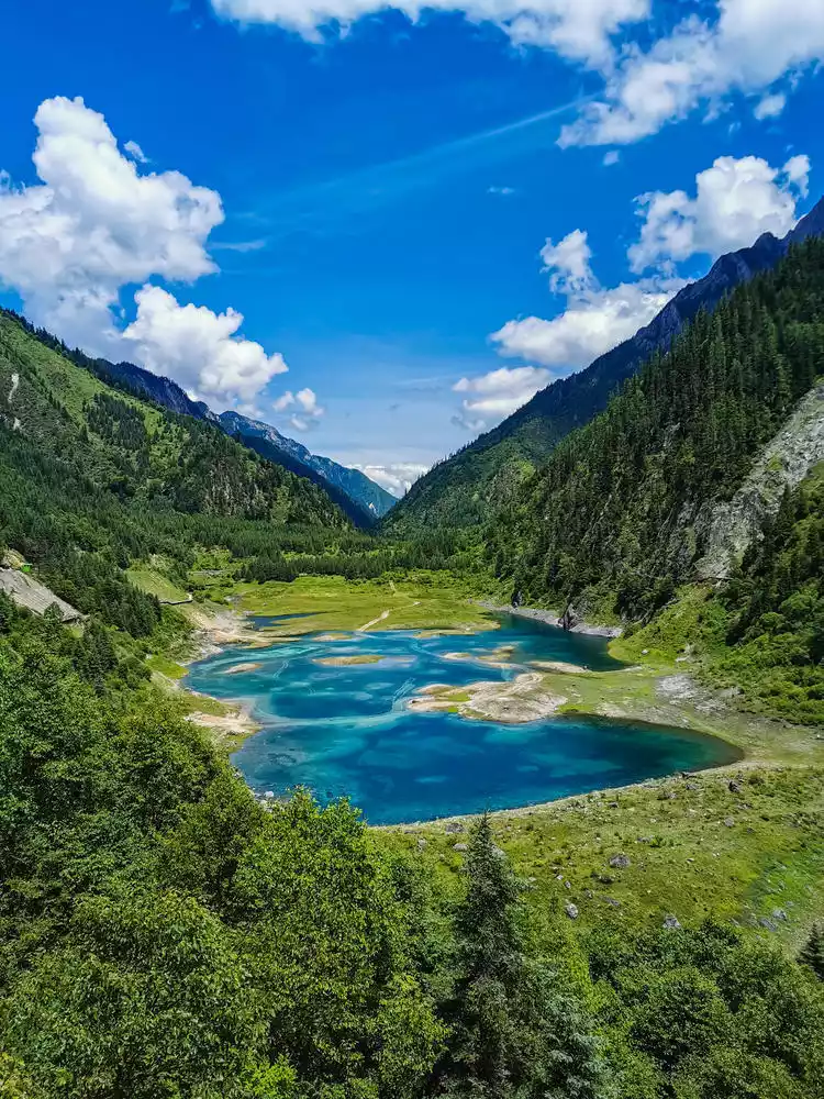 The Upper and Lower Seasonal Lakes are relatively unique lakes in Jiuzhaigou. The water volume of the lakes changes with the seasons. The lake water rises in autumn, and at other times due to the change of seasons, most of the time they are embedded in the valley and sleep soundly, revealing the beauty of time and the harmony between heaven and earth.