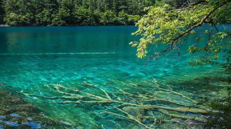 Of the many lakes in Jiuzhaigou, the most famous and beautiful is undoubtedly Wuhua Lake. With its rich variety and diverse forms, Wuhua Lake is truly the essence of Jiuzhaigou. Looking down from the Tiger's Mouth viewing point, Wuhua Lake resembles a peacock with its tail spread out, a dazzling display of colors that is breathtaking. It is a true fairy tale world, a legendary paradise of colors!