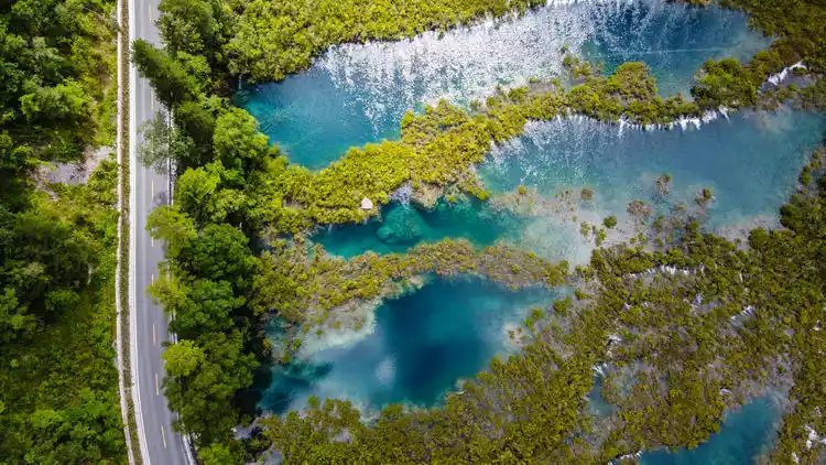The Shuzheng Lake Group consists of 19 lakes of different sizes. The 19 lakes are like 19 pieces of emerald green jade, inlaid in the deep mountains and valleys. They are connected by green trees and silver waterfalls in the middle, just like a beautiful jade necklace for Shuzheng Village.