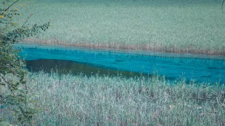 Located at an altitude of 2,140 meters and 2.2 kilometers long, Reed Sea is a semi-swamp lake. Reeds grow thickly in the sea, water birds fly, and clear streams flow, rippling green and winding through the sky, creating a truly marshy landscape.