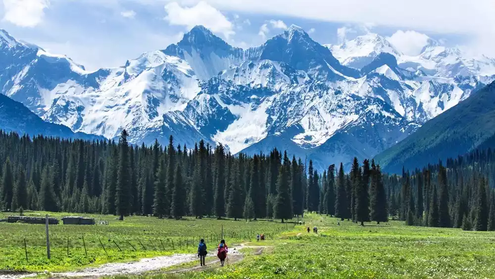 The east and west sides of the pass are flanked by peaks ranging from 5,000 to 5,400 meters above sea level. The ancient trail follows the Xiat River, crossing the Muzart Pass and Hadamuz Pass on the main Tianshan mountain range, traversing the Muzart Glacier, which is over ten kilometers long and hundreds of meters thick, and continues along the Muzart River to Wensu County, south of the Tianshan Mountains.