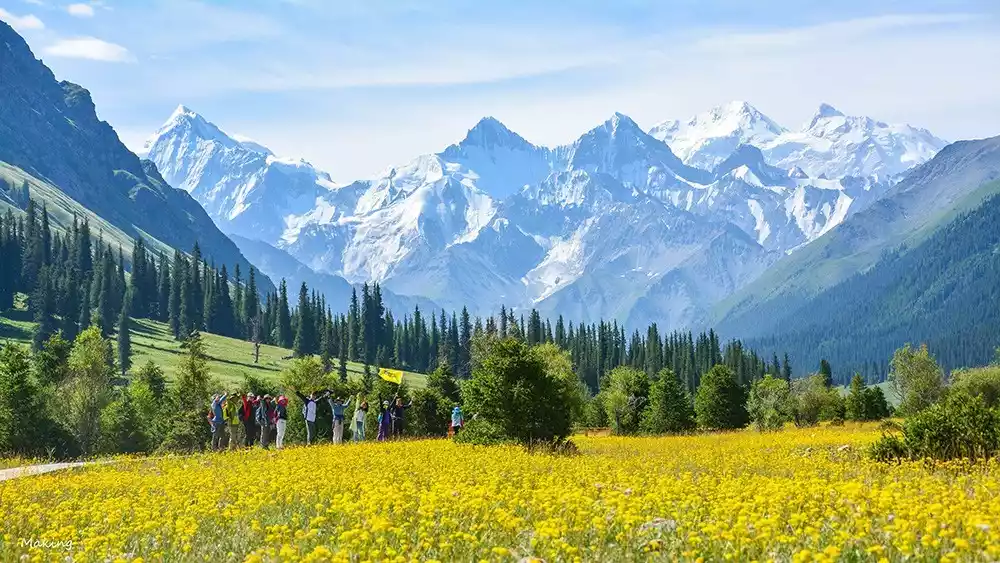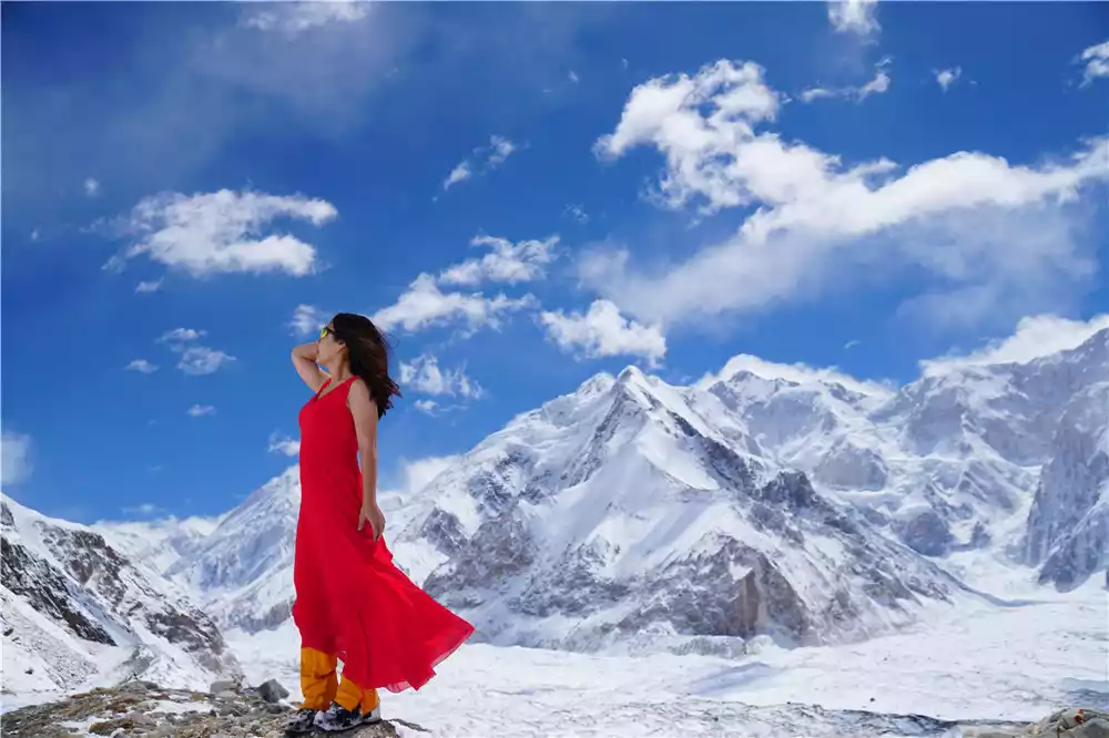 When you have gone through hardships and climbed up the Hadamuzida Pass, the watershed between the northern and southern Tianshan Mountains, you seem to have entered a world of ice and snow. The towering snow-capped mountains around you appear and disappear in the clouds, and the endless Muzart Glacier under your feet winds up the valley like a jade belt and disappears in the sea of snow and clouds.