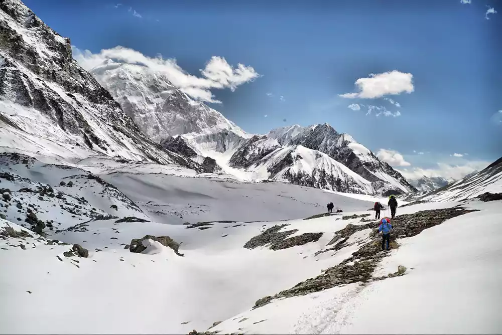 2. Do not follow the glacier. After crossing the 2-kilometer-wide glacier, climb up the opposite mountainside to find the ancient trail and then go down along it.