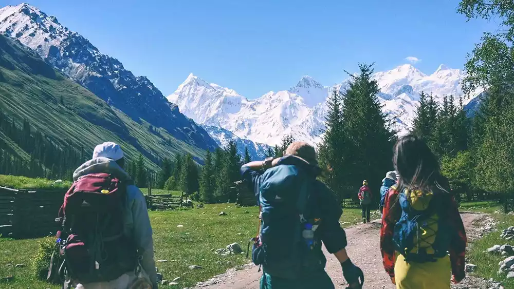 The hike typically begins at Shat Hot Springs, heading upstream along the Shat River Valley. After a dozen kilometers, you'll see the Muzart Snow Peak. Turn right, cross the wooden bridge, and continue upstream. After a few kilometers, you'll find a valley to the south, which leads to Hadamuzida Pass. After descending Hadamuzida Pass, you'll reach the Muzart Glacier. Cross the glacier and walk along its left side to reach the ancient castle. After passing the castle and descending the glacier, follow the horse trail south along the Muzart River Valley to the Guanghui Quarry.