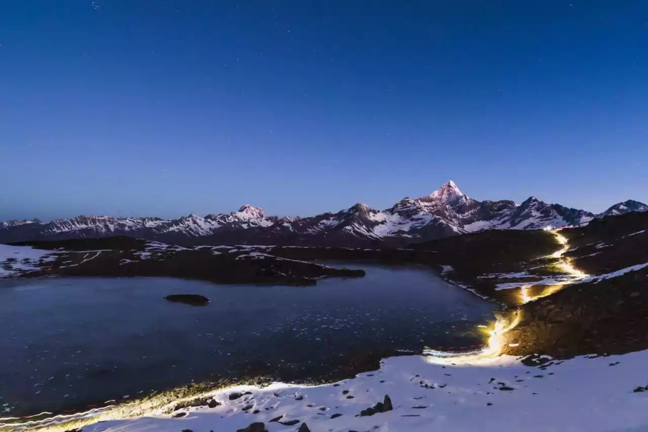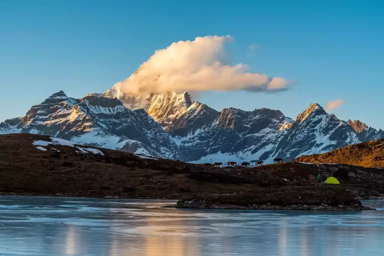 Don't miss the sunrise over Yaomei Peak, the reflection of the snow-capped mountains, and the scenery of Bajiaopeng Lake. Don't miss the sunrise over Yaomei Peak today, where you'll also have the opportunity to admire the reflection of the snow-capped mountains. After breakfast, leave at an appropriate time and hike to Bajiaopeng Lake.