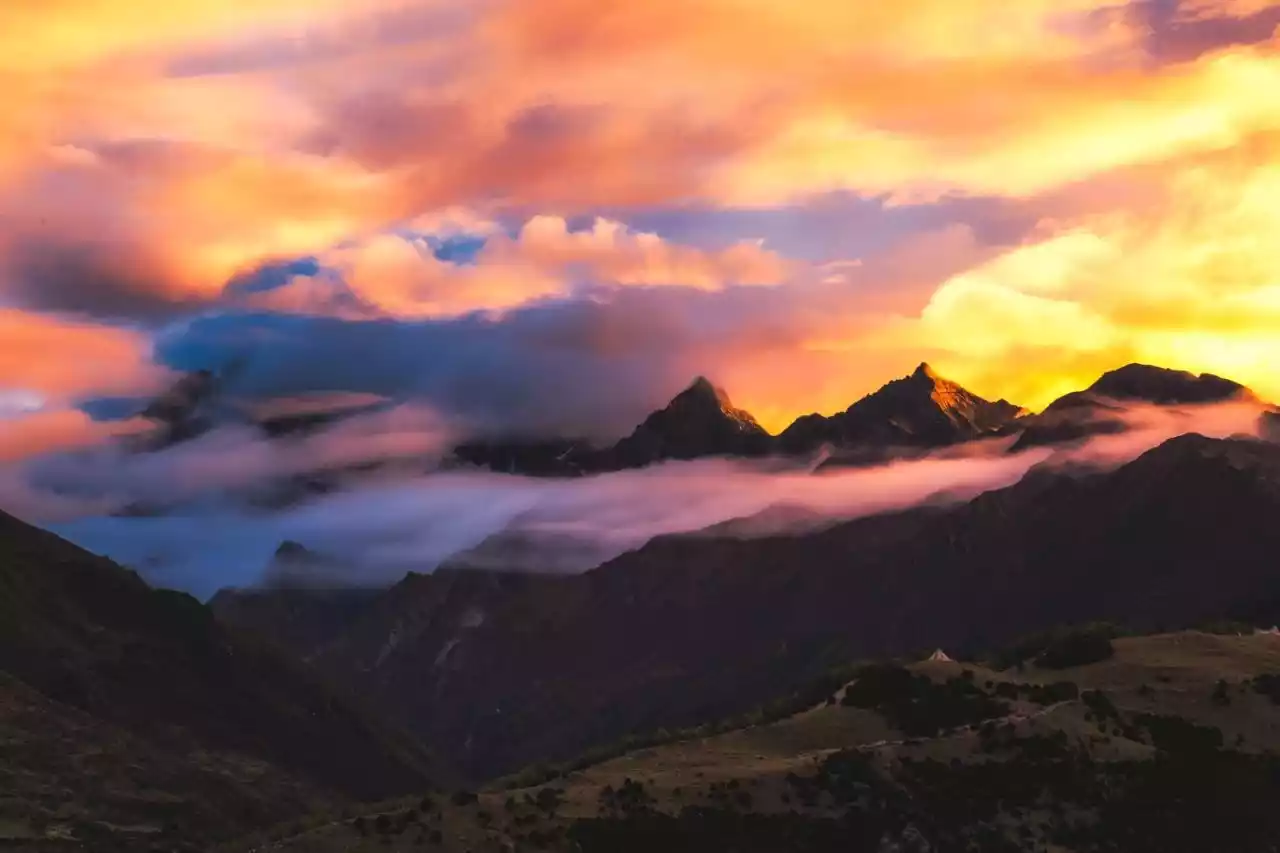 The sunrise on Yaomei Peak, the reflection of snow-capped mountains, and the scenery of Haizigou. Bajiaopeng Haizi is one of the best places to take pictures of the sunrise on Yaomei Peak and the golden mountain. After breakfast, we will leave in time and hike back to Siguniang Mountain Town to end our plateau hiking trip.